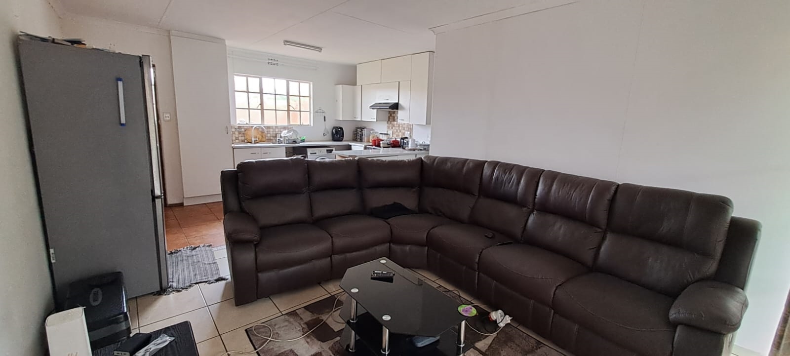 A spacious 3-bedroom stand-alone townhouse in a secure estate. The house is located at the corner of the estate with yard space for the kids to play and the adults to entertain. The house is spacious with open-plan living transitioning between the kitchen and the large TV room. Two bedrooms share a bathroom with a toilet and shower and the third bedroom is the en-suite with its own bedroom.