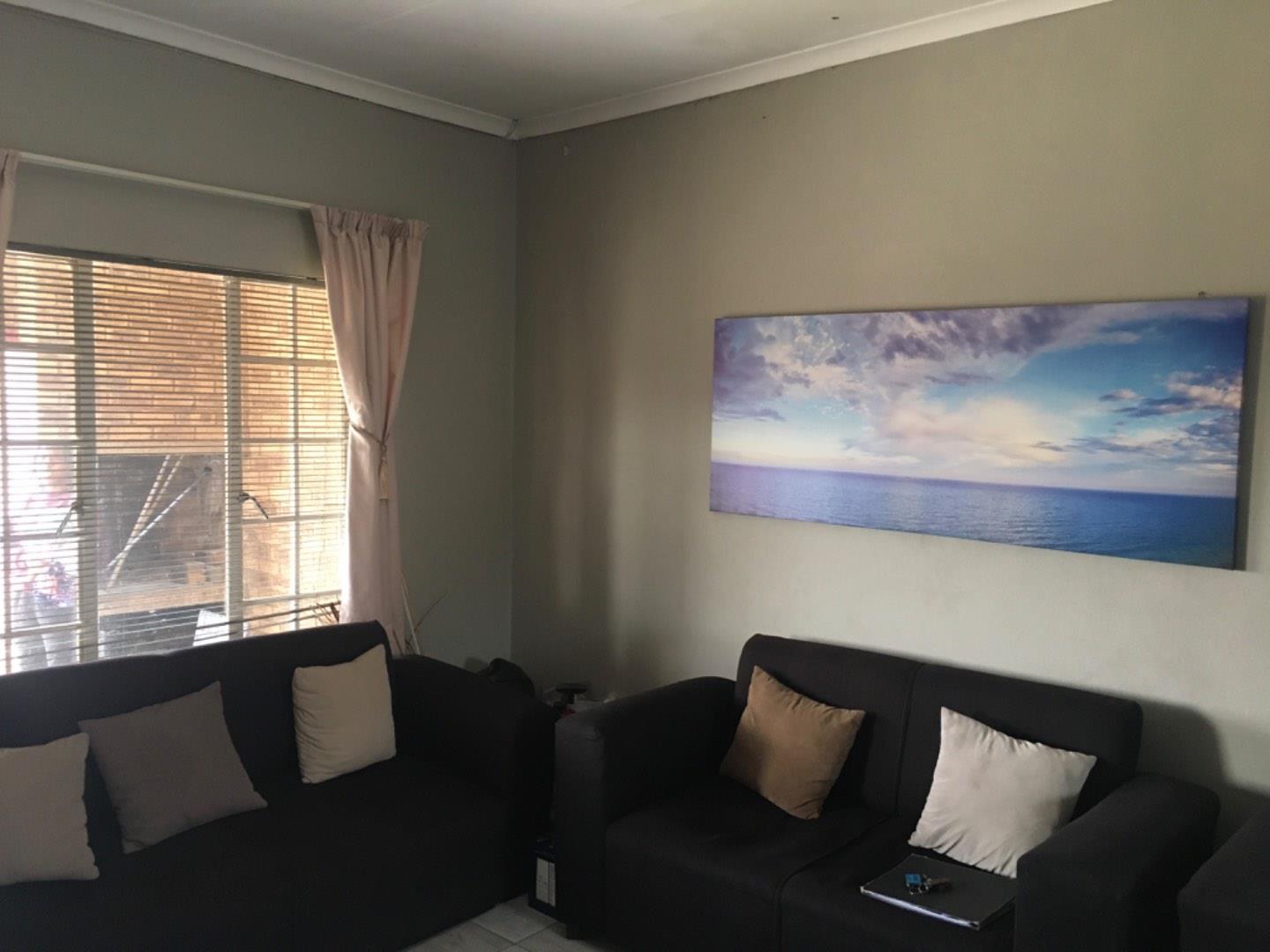 Lounge/dining room area leading out to a balcony with built in Brasilia.