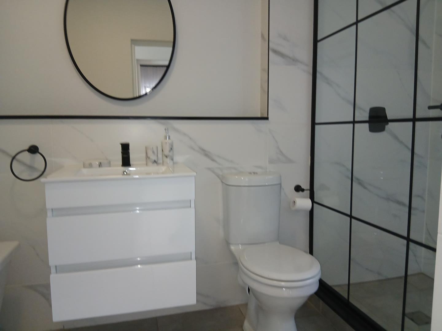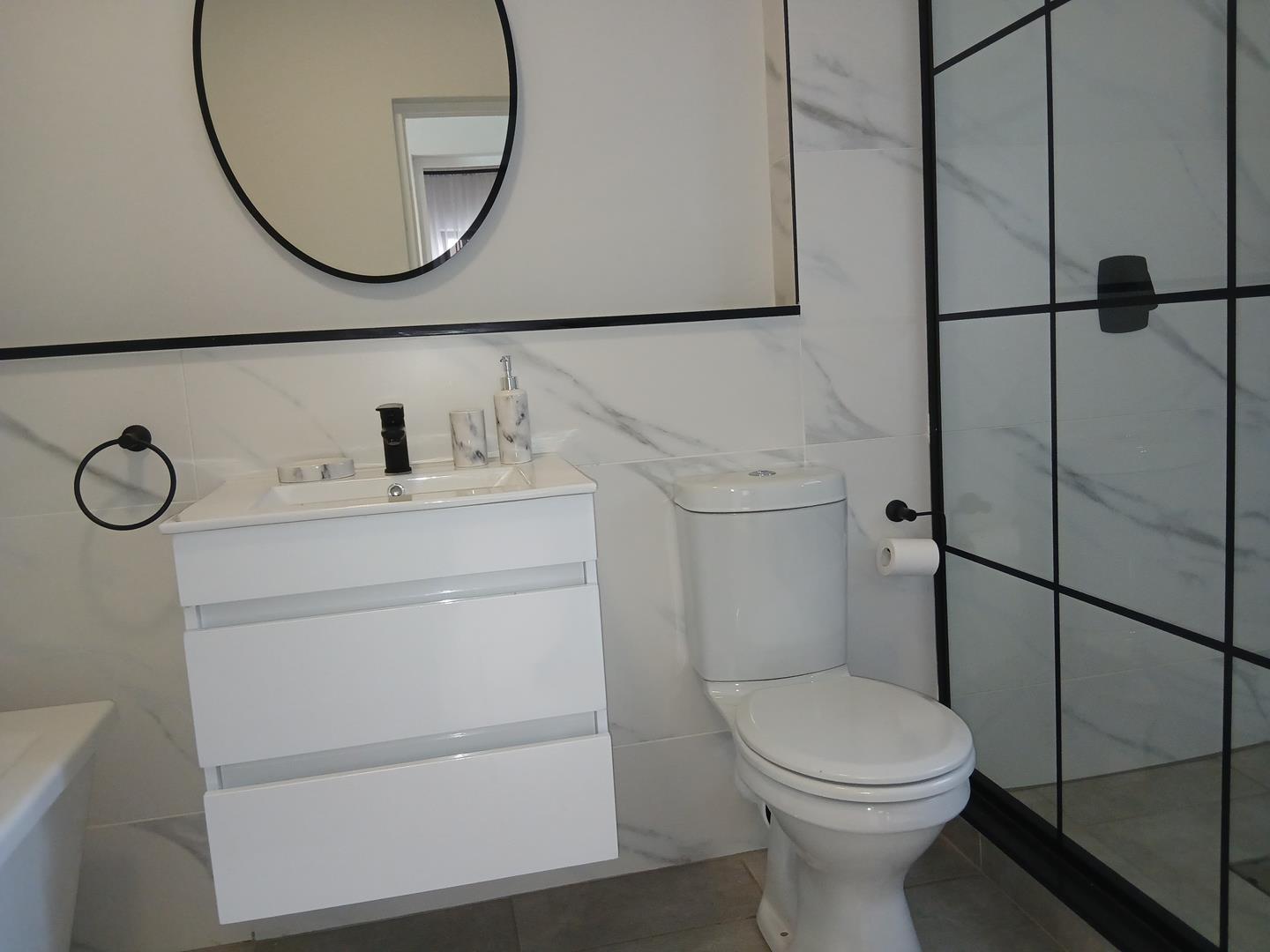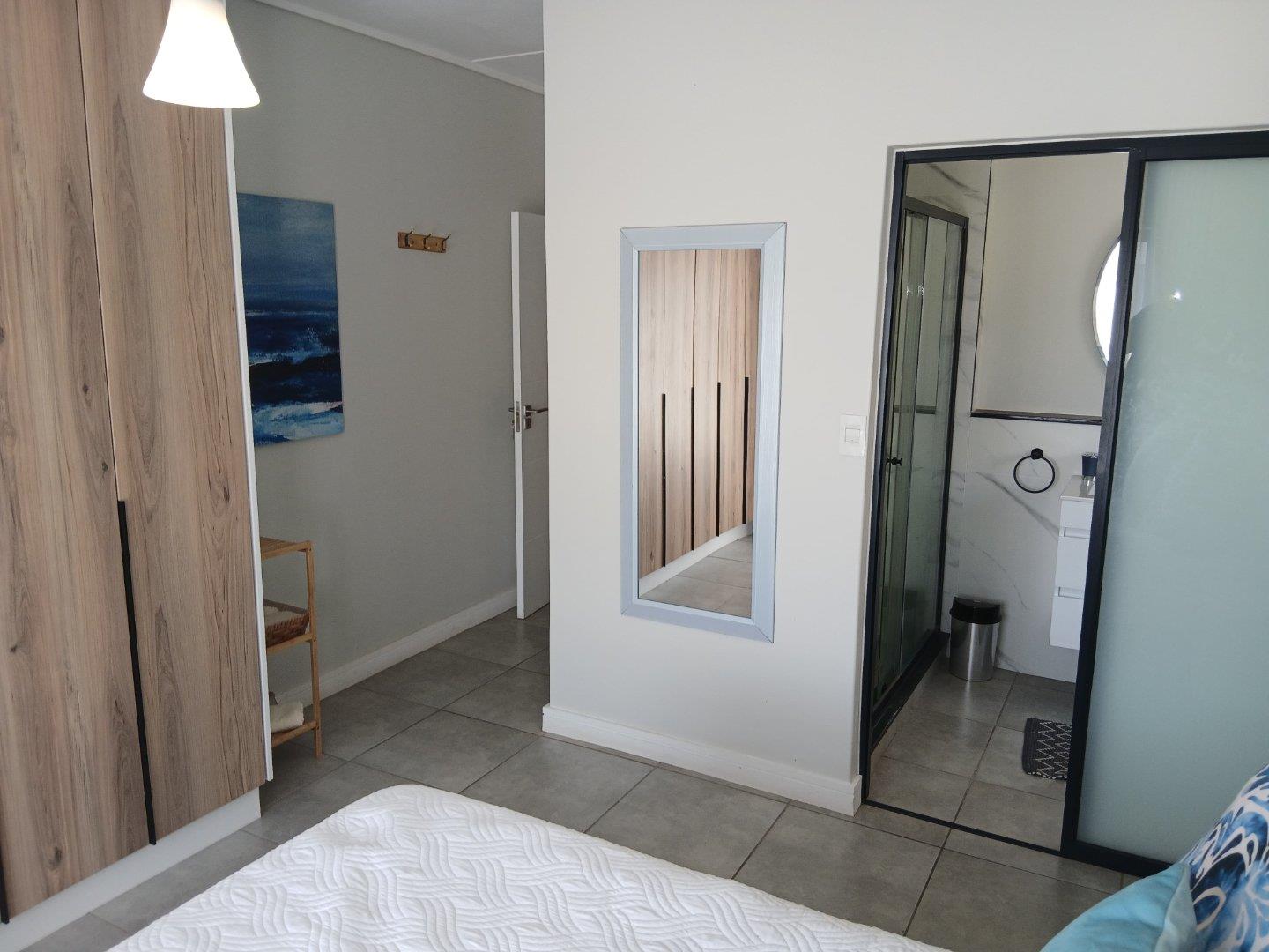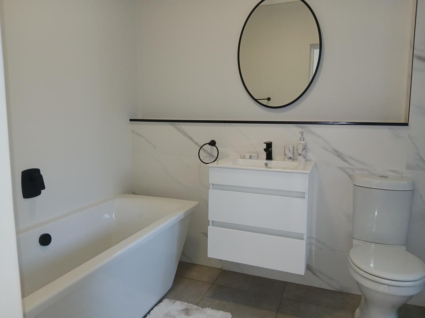 The property offers three well-sized bedrooms, each with built-in cupboards. The master bedroom boasts an en-suite bathroom, while the second bathroom is a full family bathroom.