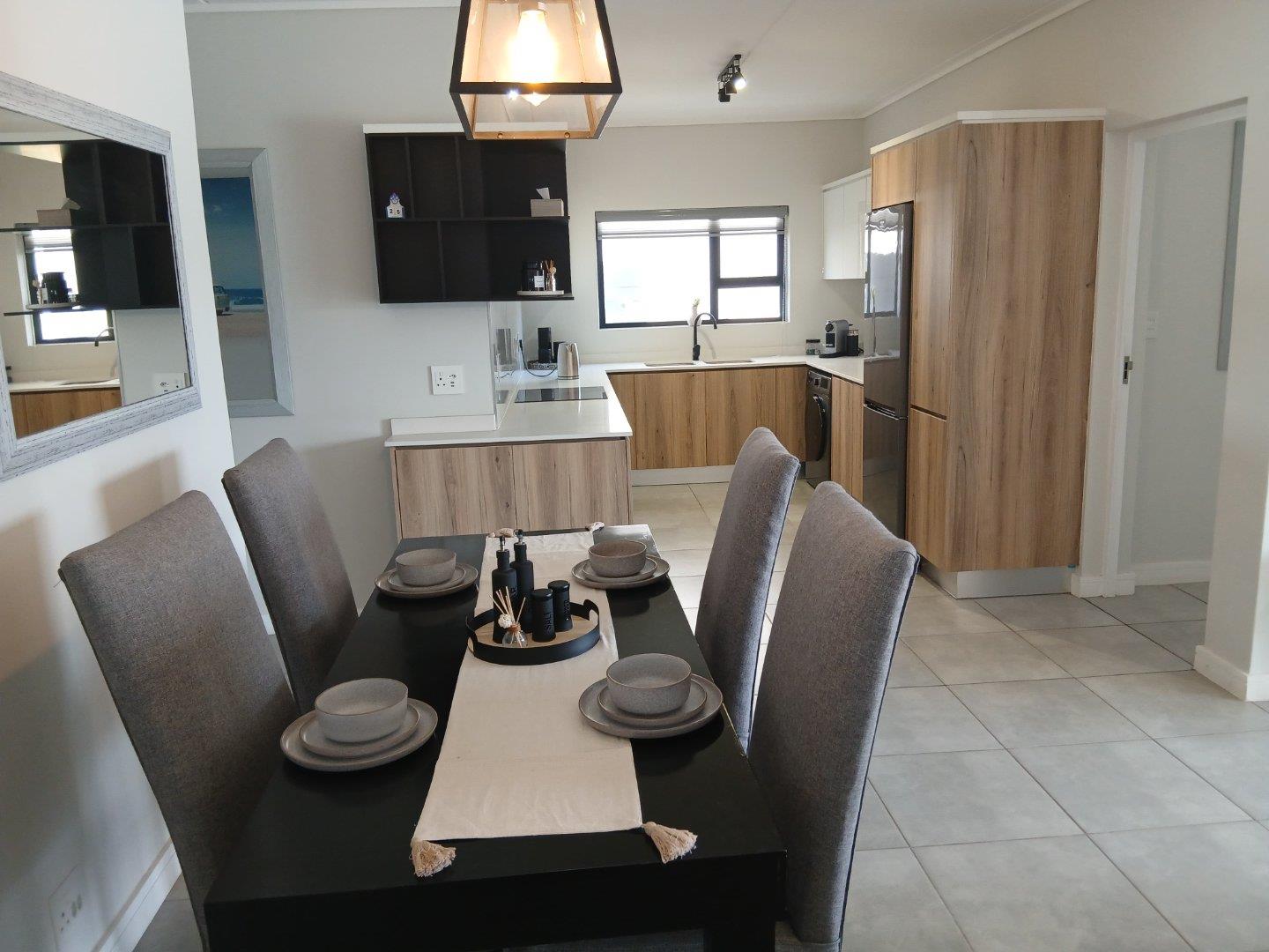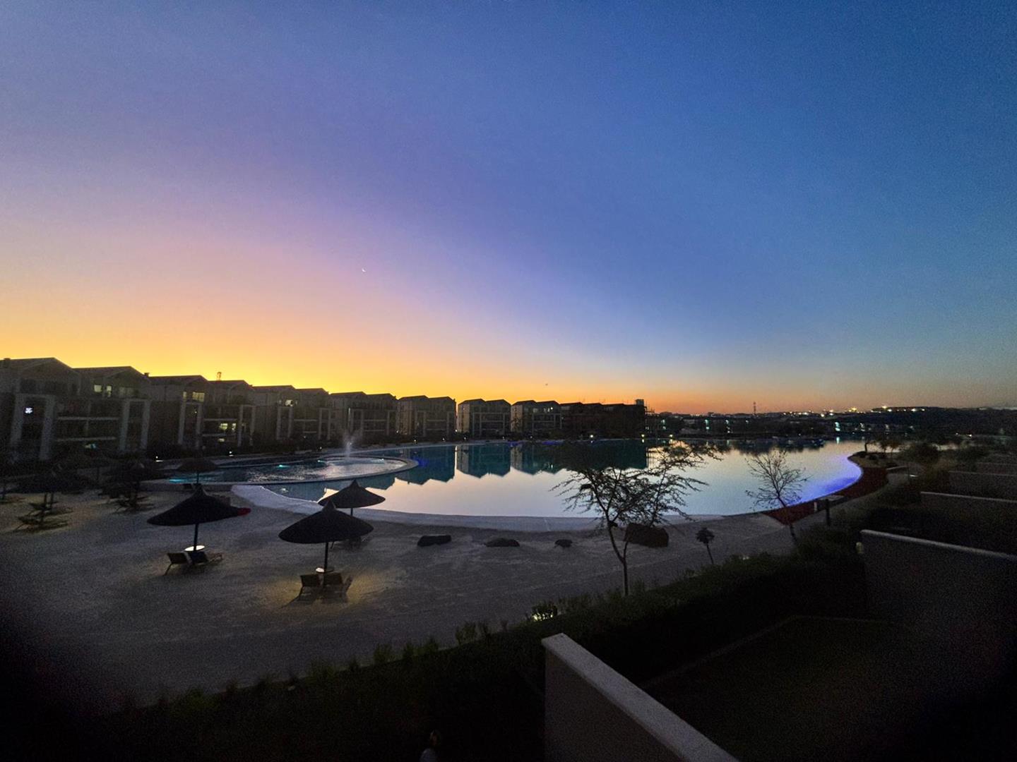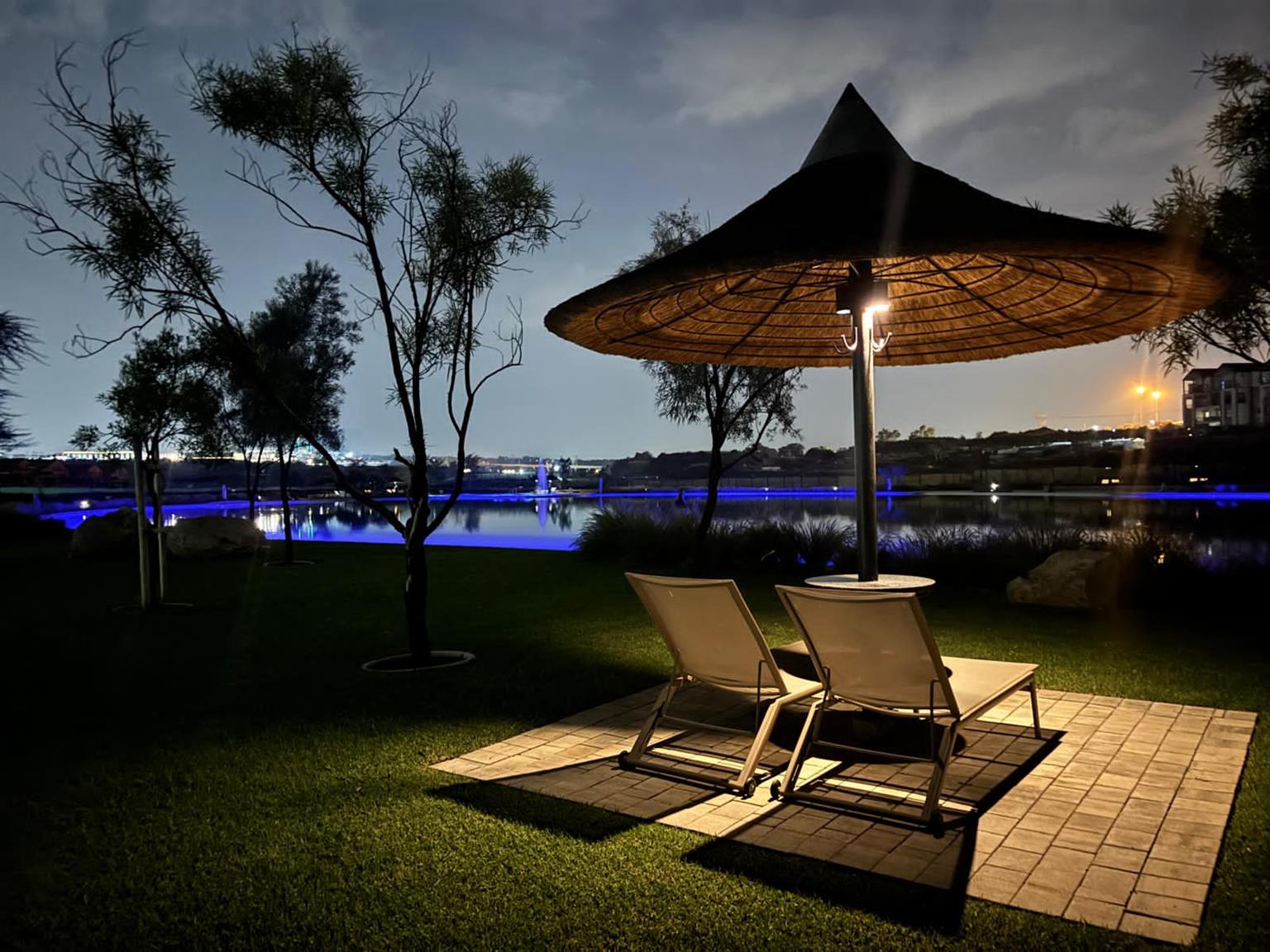 The spacious open-plan lounge and dining area seamlessly flows onto a private balcony, perfect for enjoying the picturesque lagoon views.