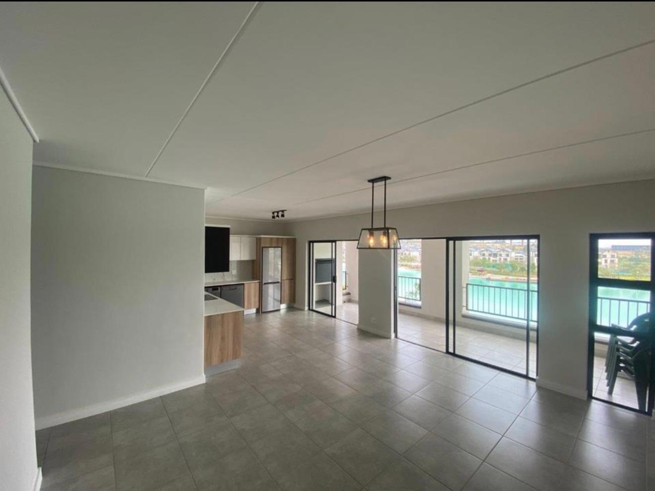 The apartment has 3 spacious bedrooms and 2 bathrooms, master bedroom has an en-suite. The kitchen is ultramodern with white technistone tops and comes with eco-friendly appliances such as single fridge/freezer, and dishwasher. The living areas are open plan and leads to a covered patio and neat garden, overlooking the lagoon. This apartment comes with 2 covered parkings, is fibre ready and has prepaid electricity & water meters.