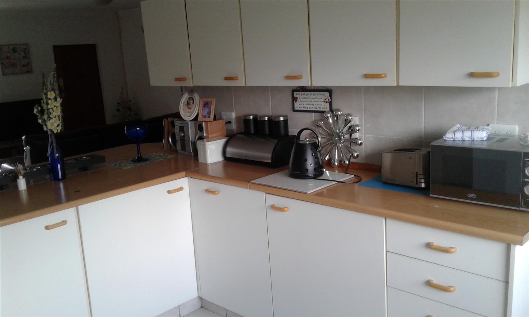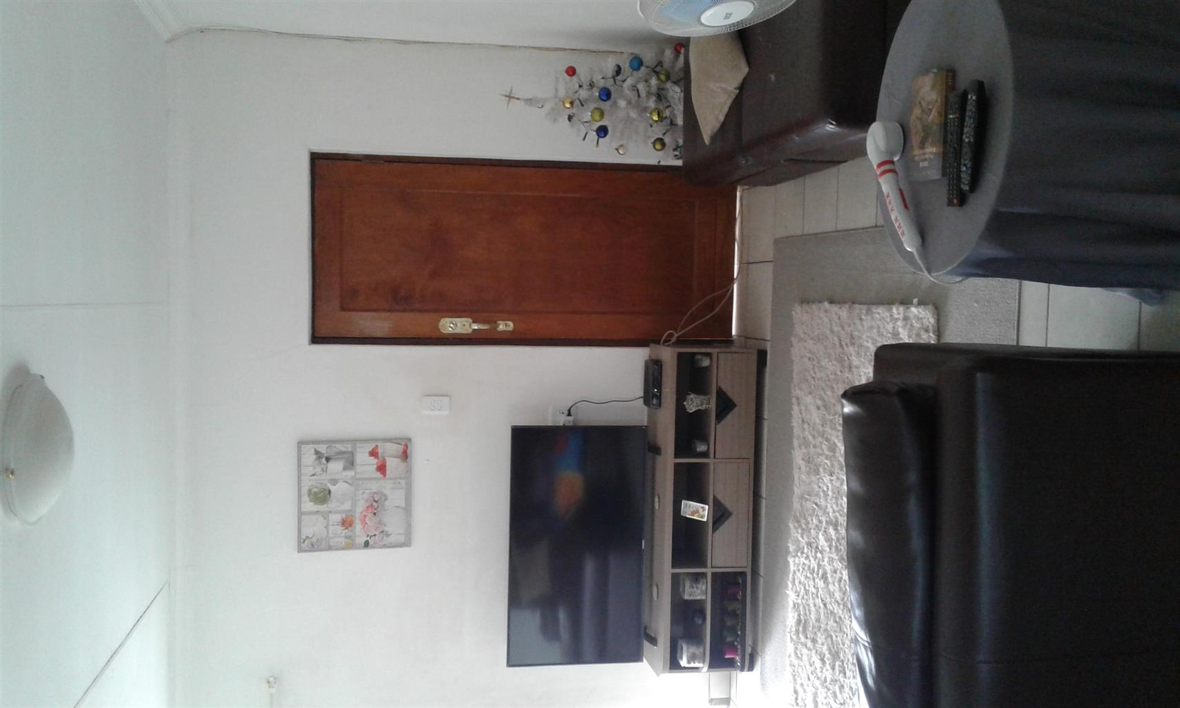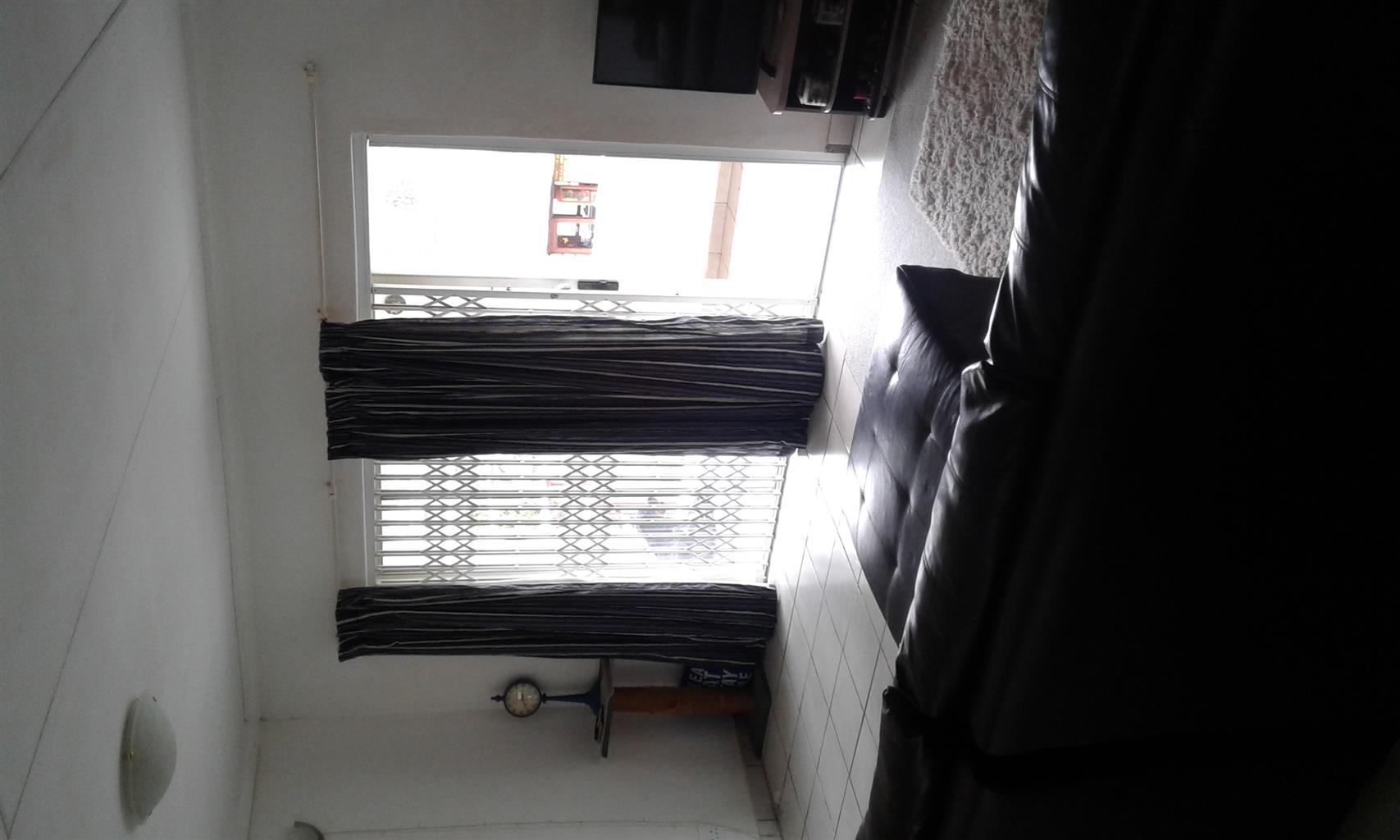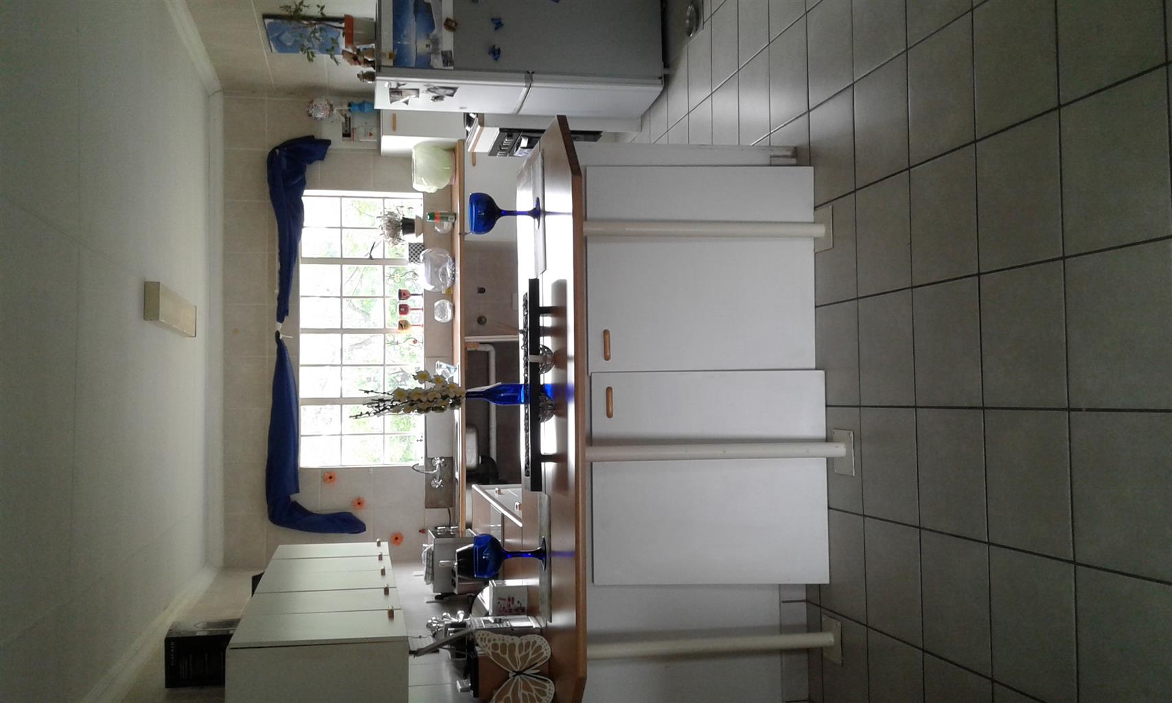 upstairs. Bedrooms are 5X5 sq meters with build in cupboards. Large open planned lounge/dinning and kitchen with breakfast nook. Kitchen is well equipped with cupboards and stove. The unit is fully tilled with trelly door and safety doors. Electricity is pre-paid and there is a water charge of R250-00