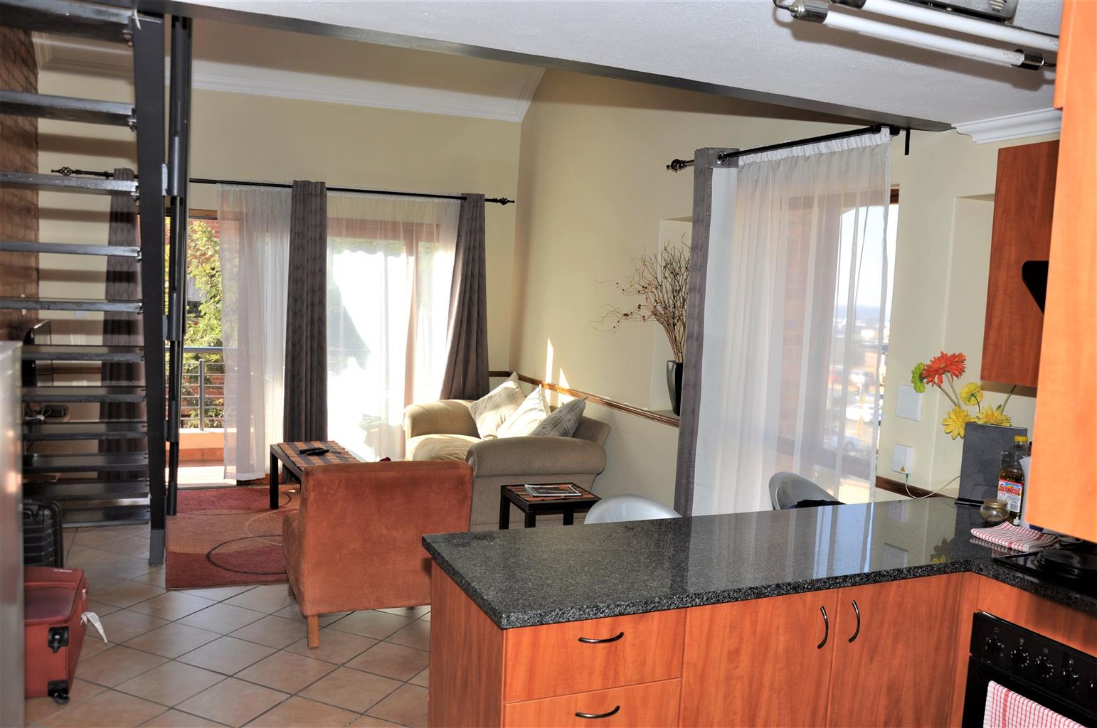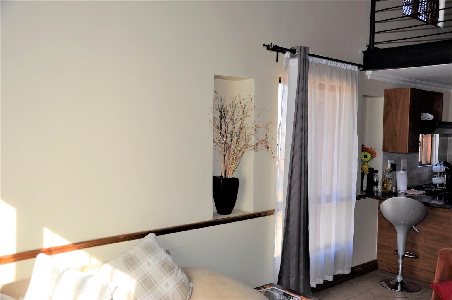 This Fully Furnished Self-Catering Bachelor Loft Apartment is located in Hilltop Lofts Security Complex in Carlswald Midrand, Gauteng, South Africa. The property offers the following: open plan kitchen, bedroom area with a separate bathroom, covered patio and one covered parking. Hilltop Lofts Security Complex offers 24-hour access control with security guards, a clubhouse with a swimming pool and braai facilities.