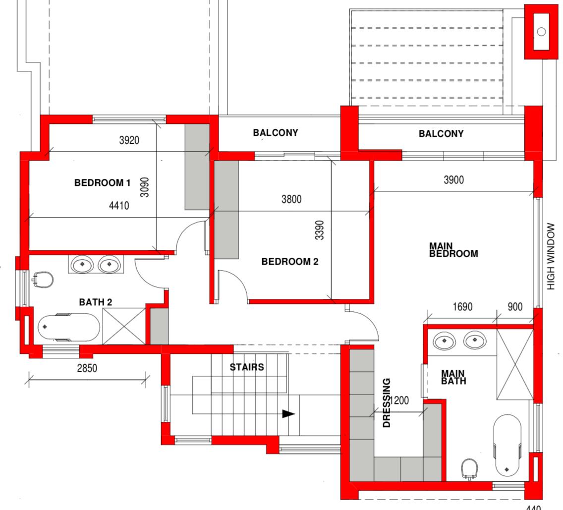 Main bedroom with private balcony, large walk-in closet (WIC), and ensuite