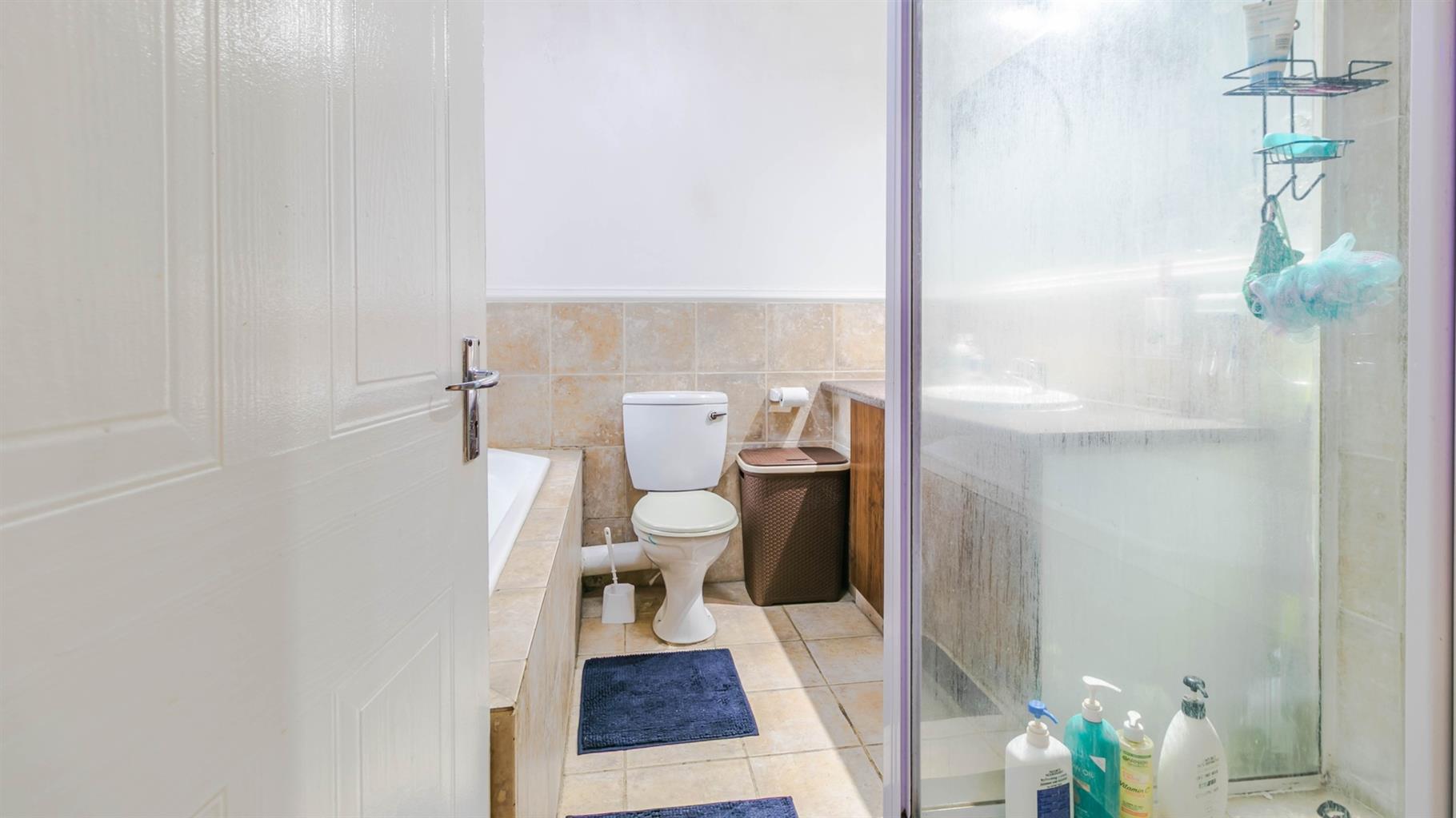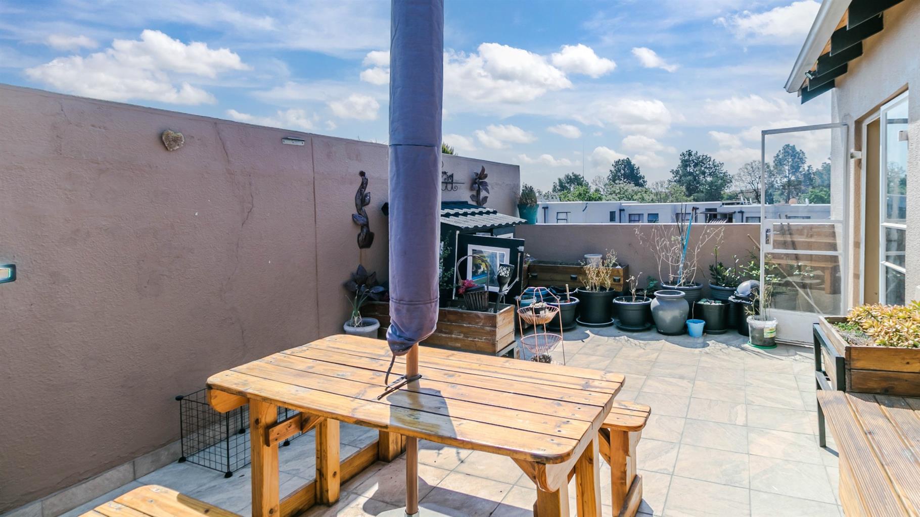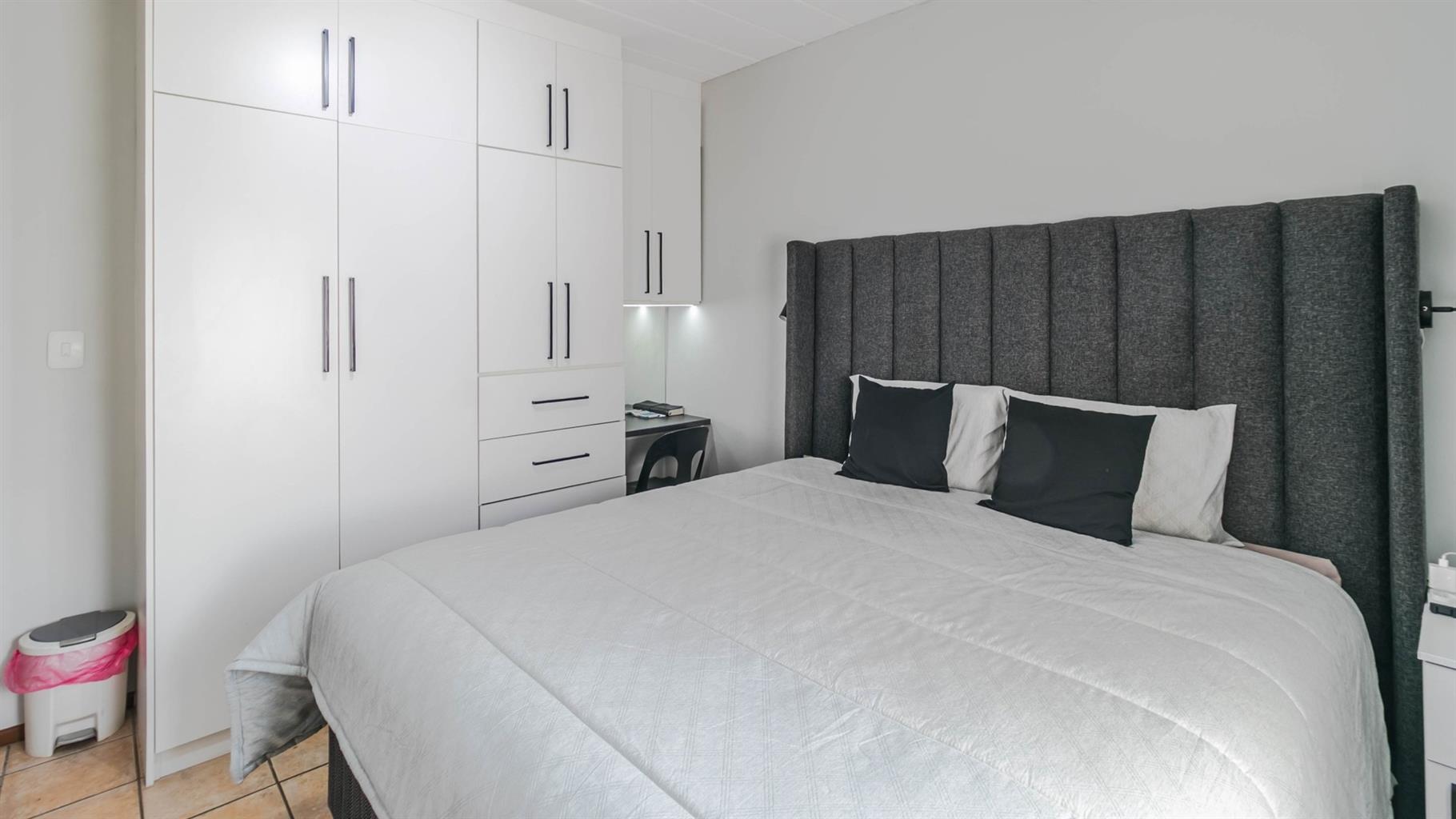 A lovely loft bedroom with a separate bathroom, shower, washbasin and toilet, as well as a little study space, is located upstairs. Opening to the amazing Balcony with the Most amazing view of Midrand in its entirety.