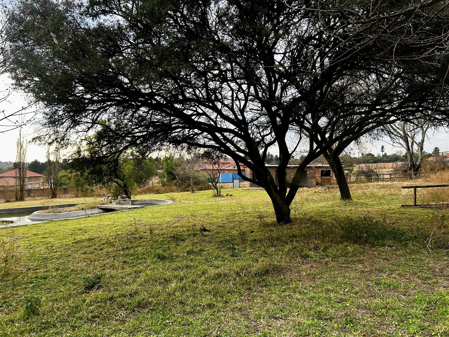 This majestic home need soft hands to restore it to its glory days. Nestled in the cul de sac of Terrier Close located approximately 2kms from the popular Republic Road. The size of the land has been optimally capacitated to accomodate (a) five (5)horse's stables and where riding lessons can be undertaken (b) double storey main house and (c) outside accomodation that can be utilised as offices or any appropriate requirements.