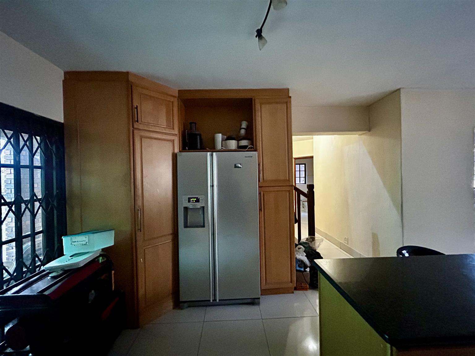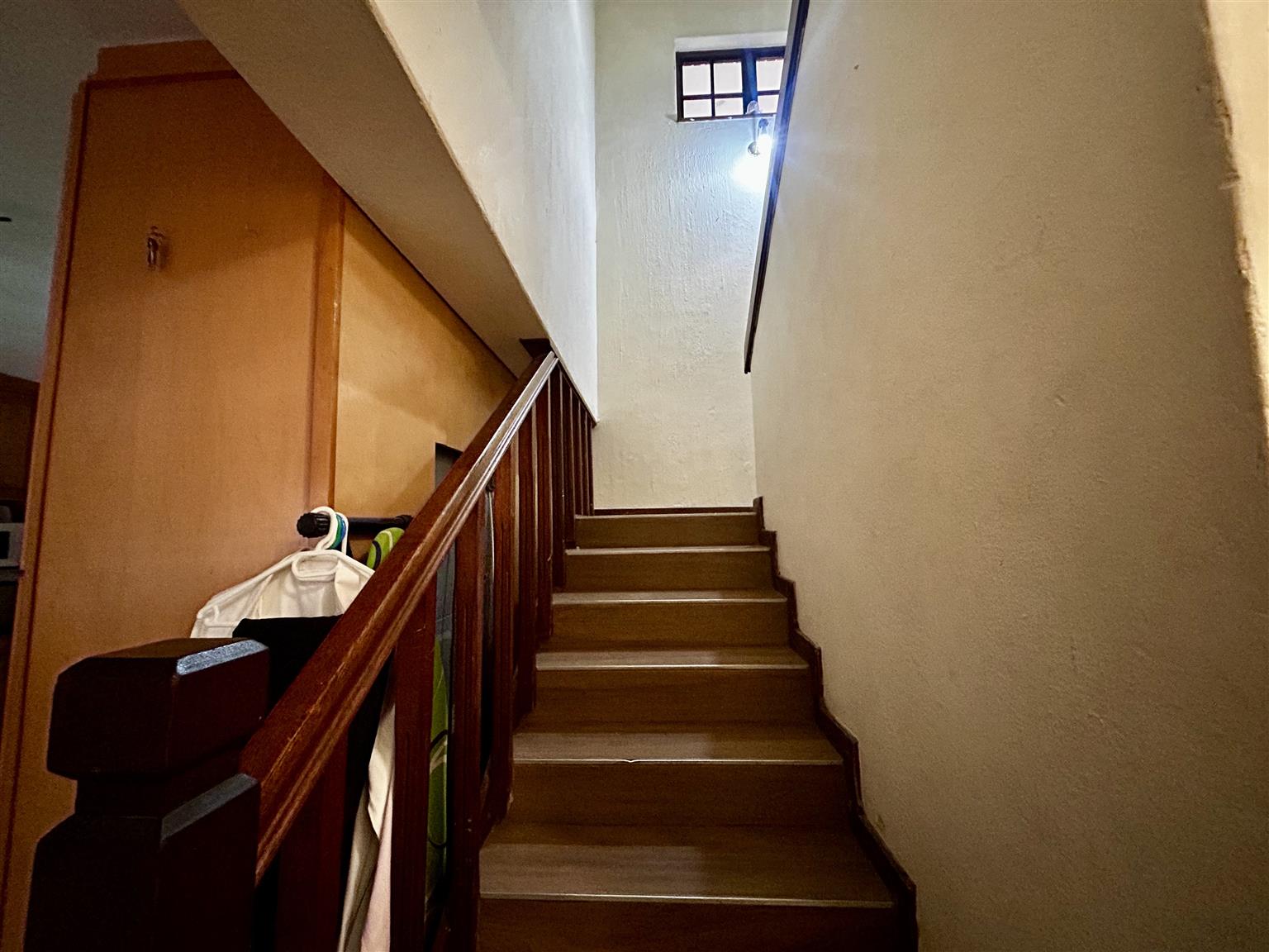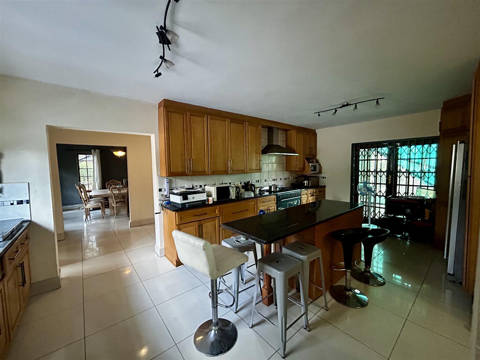Take the stairs to the 1st floor and on the righ hand side is a bedroom and another small room attached hereto including the 3rd bedroon on this floor.They have a door leading to the long balcony which is also used by the main bedroom. The pajama lounge is located towards the main bedroom and has a door leading to the balcony referred to earliar with a bathroom in the vicinity shared by the other bedrooms. Proceed to the main bedroom on en-suite and a door leading to the balcony overlooking the garden and swimming pool.