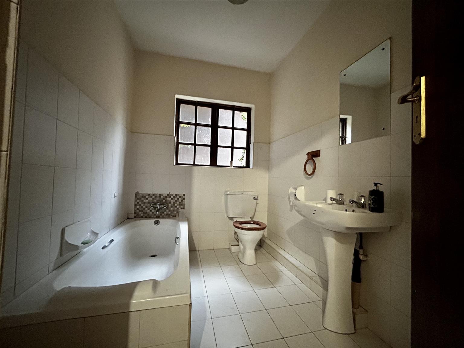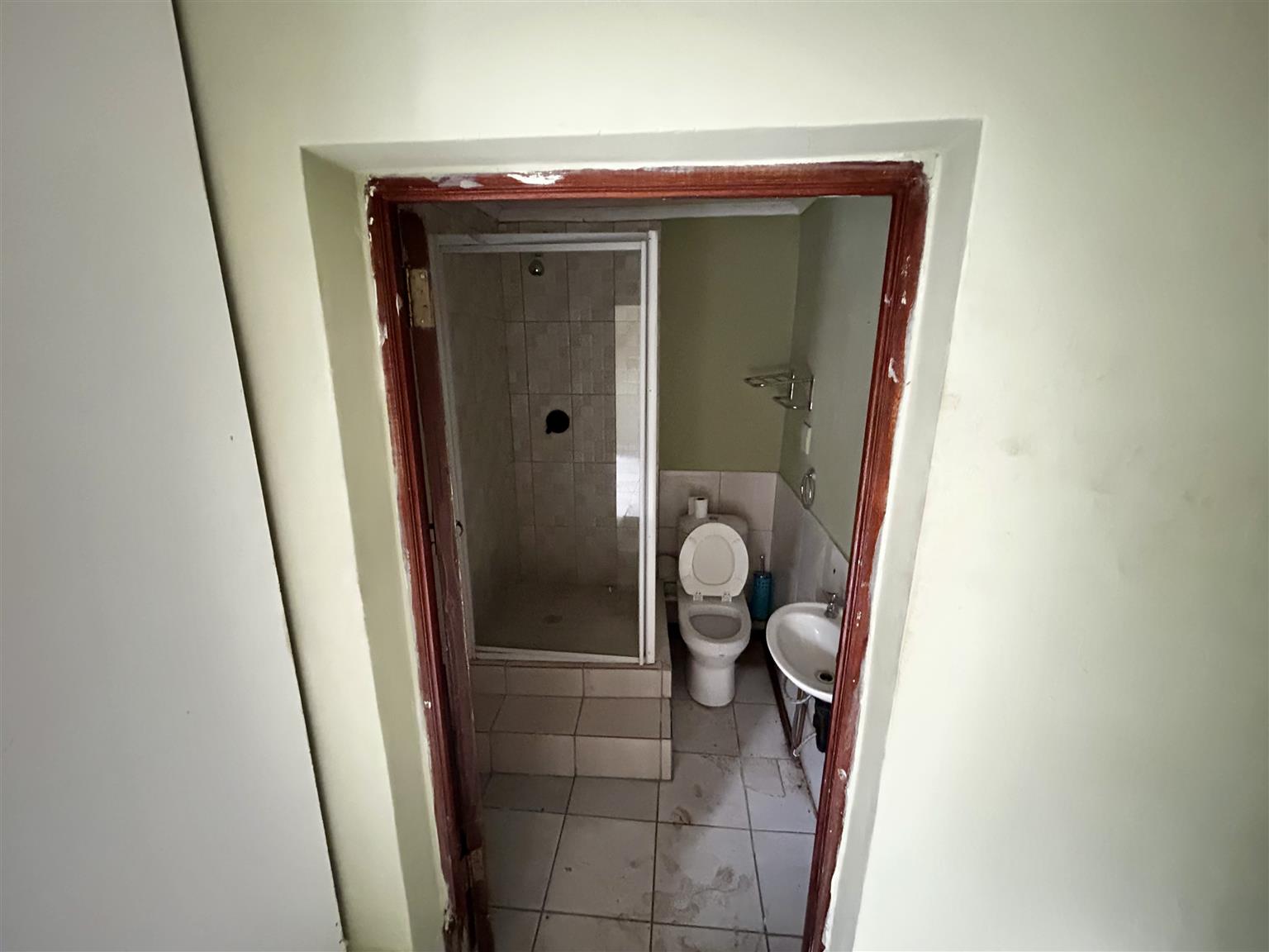 Enter through the main door with the dining room and proceed to the large lounge with a door leading to the garden.Taking a few steps backwards to the right hand side is this large kitchen with marle tops and the scullery further on with the door leading out side.There is 1 x bedroom on the ground floor with bathroom fitted with bath tub and toilet.