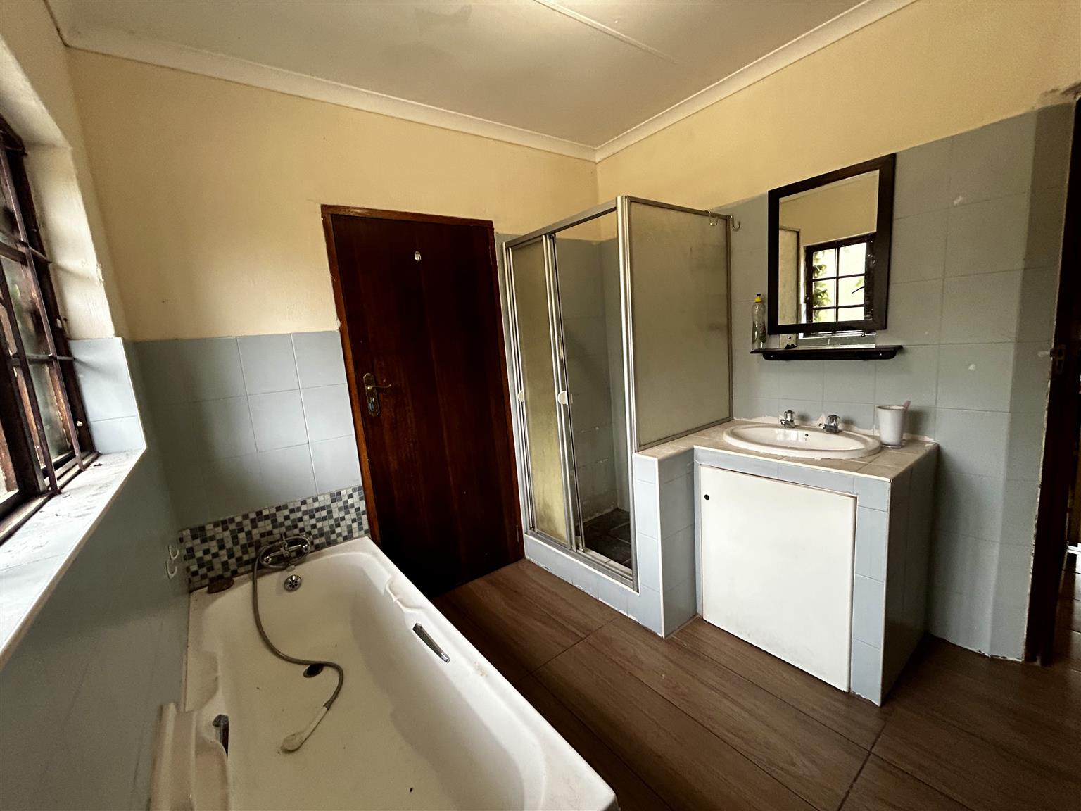 This has been divided into 5 x bachelors although incomplete each with pre - paid meters.Attached hereto are other 3 x outside bachelors with only two currently occupied. The laundry has been converted into another bachelor and the double garage is located in this vicinity.The property including the swimming pool needs soft hands to restore the property to its glory days.The property is fully fenced.