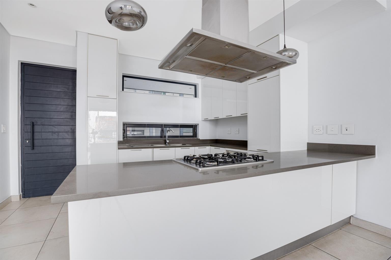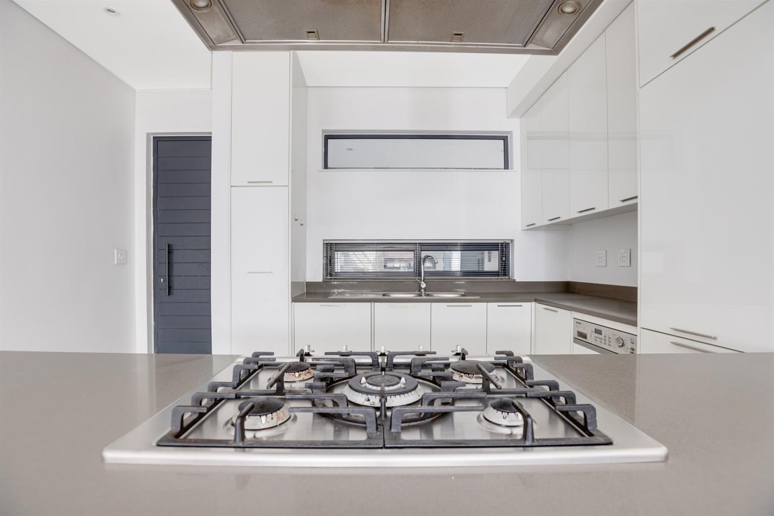 Stunning modern 2 bedroom 2 bathroom apartment is up for rental with immediate occupation. The kitchen with Caesar stone tops, a gas hob, and central island, an open-plan dining room, and a lounge area with glass stacker doors to a balcony. The kitchen is fitted with integrated Miele appliances like a fridge/freezer, washing machine/tumble dryer, and dishwasher. Prepaid electricity, water, and gas as well as a Generator to run all the appliances and the lights.
