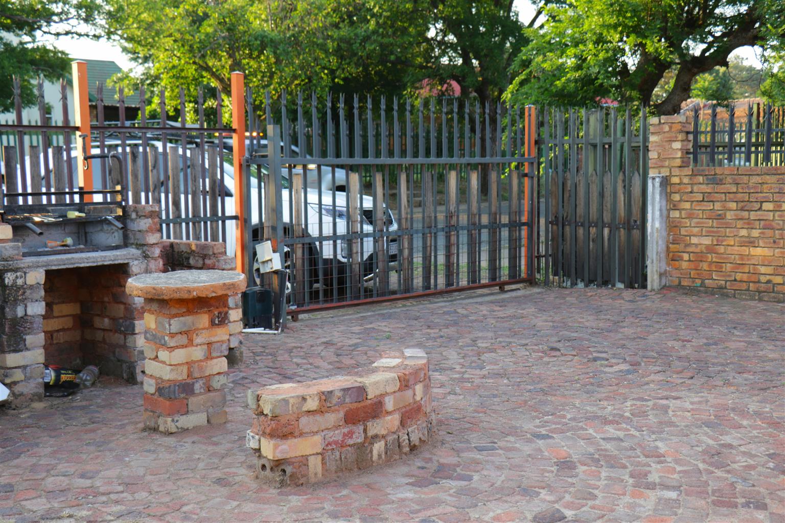 Outside, the large property is fully walled with palisade fencing at the front, ensuring both privacy and security. Enjoy the built-in braai for cozy evenings, a Hollywood-style garage, an additional single garage, and outbuildings for extra storage or potential workspace.