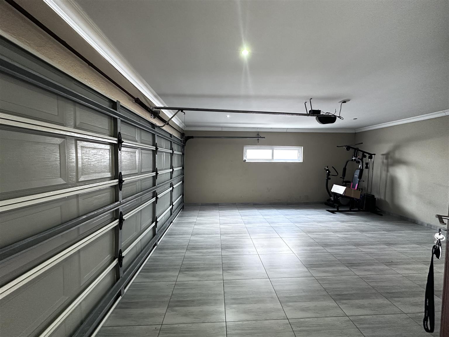 The property boasts an automated double garage, fully tiled with direct access to the house. Outside, you’ll find a convenient storage unit for extra space.