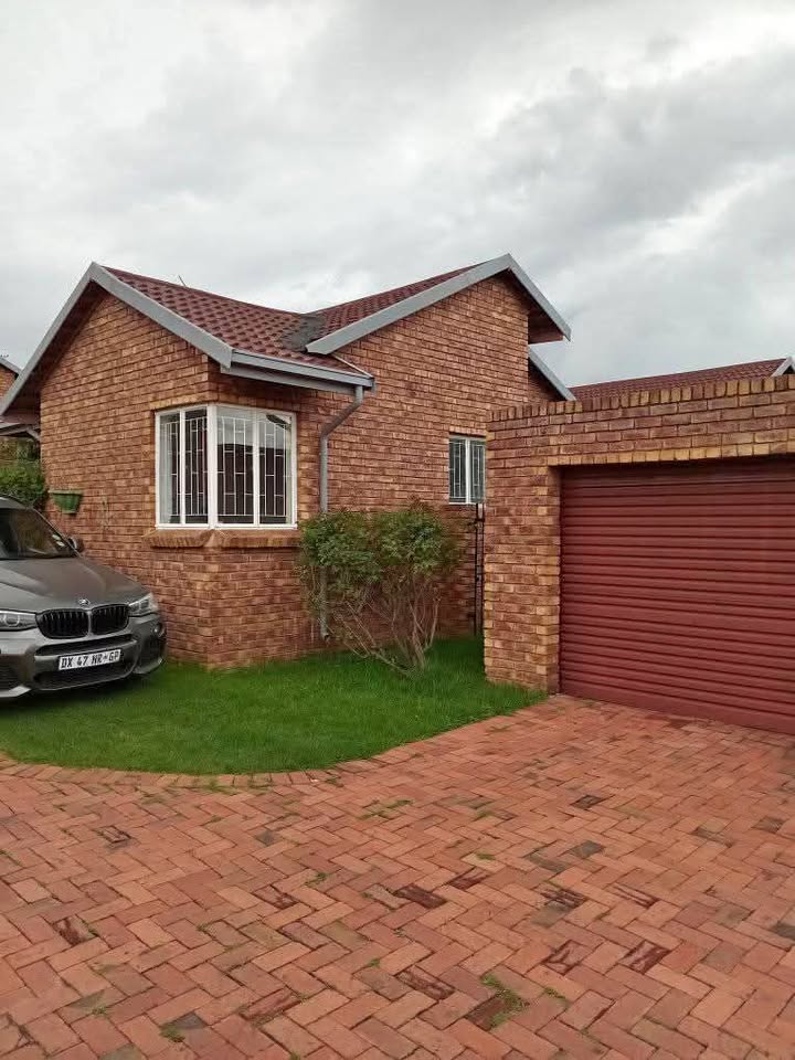 2 bedroom house in a complex of only 15 houses.Open plan kitchen, fitted stove wall wardrobes, bedrooms with carpet floors.Single garage Viewing by appointment Dainty Diamond Properties Tshepo