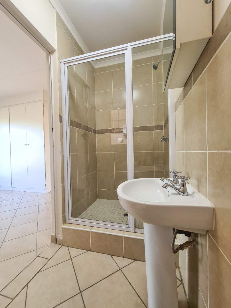 The main bedroom is a large-sized room that has built-in cupboards and an en-suite bathroom complete with toilet, basin, and shower.