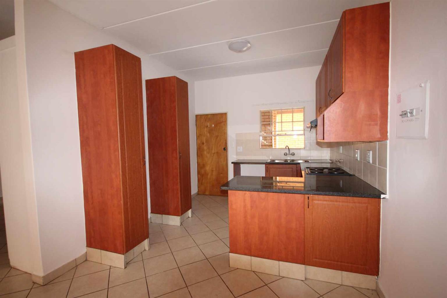 Karis Properties is delighted to present this turn-of-the-key modern 2 bedroom, 2 bathroom unit that has an open plan kitchen, dining/living area that leads out to a covered patio with a built-in-braai and a private garden.