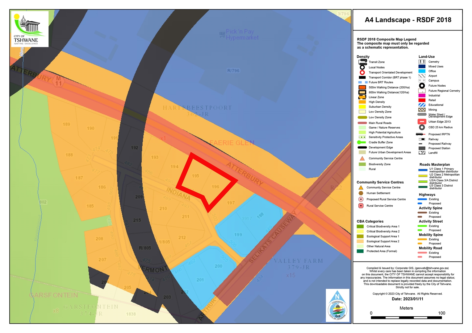 This land is located on Atterbury Road in the heart of Faerie Glen, close to various shopping malls and schools. Already zoned and approved for Residential 4. Allowing for 44 units in a 4-storey building. Each unit consists of 55.3m² and there will be 59 parking bays.