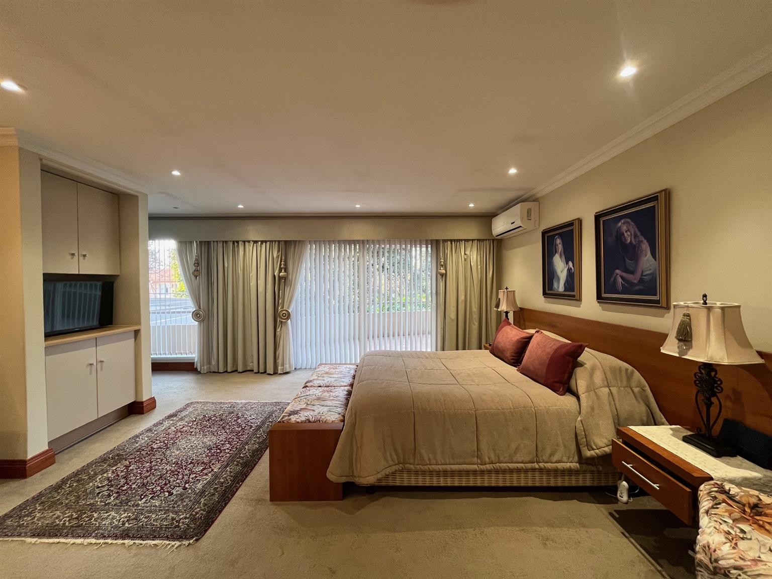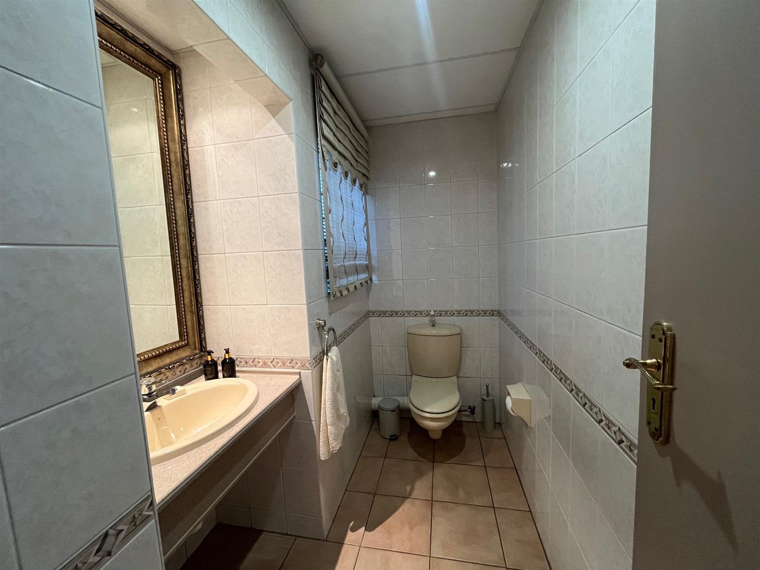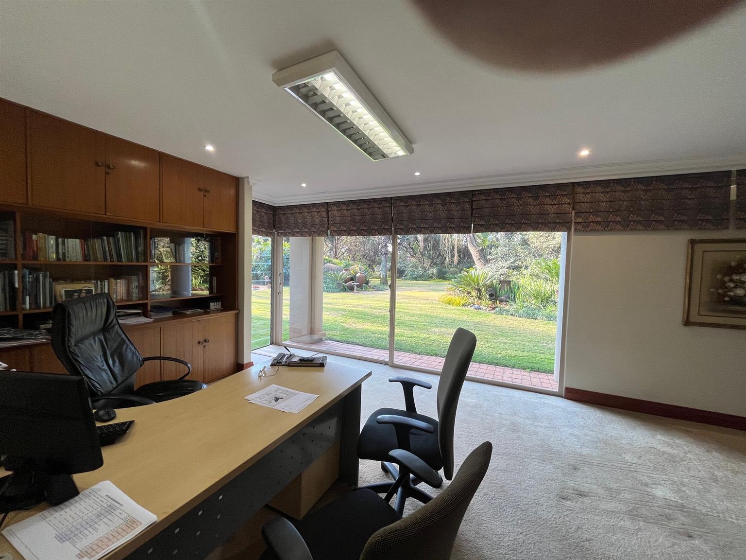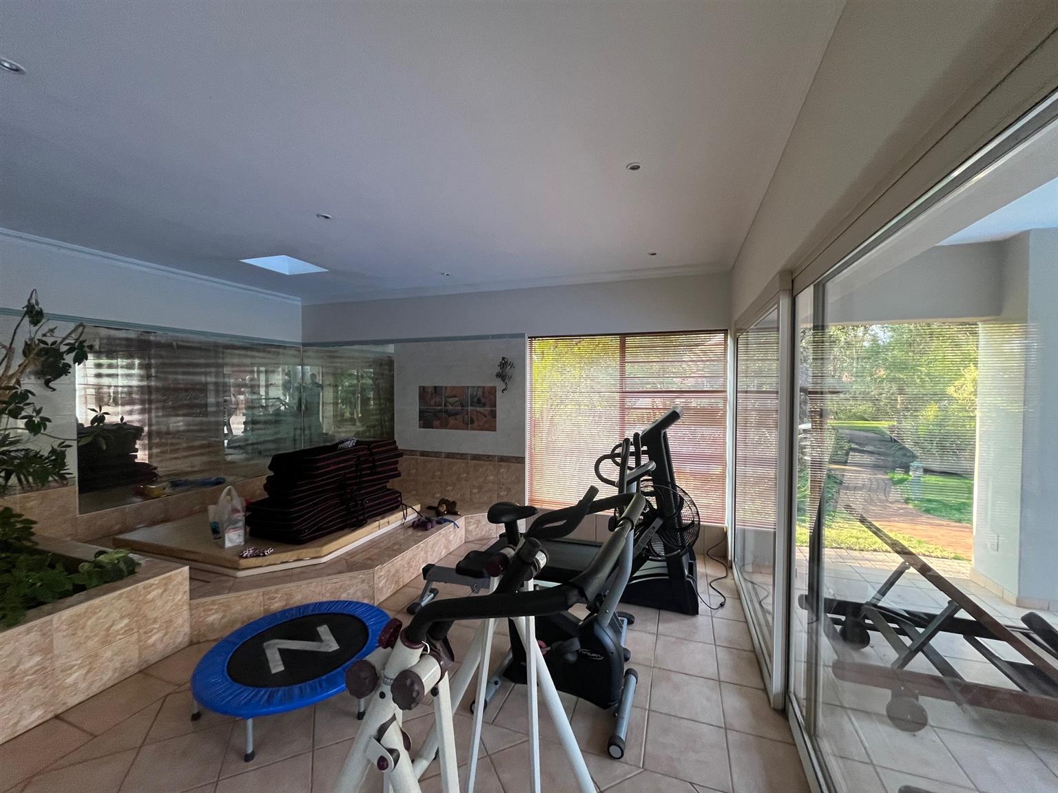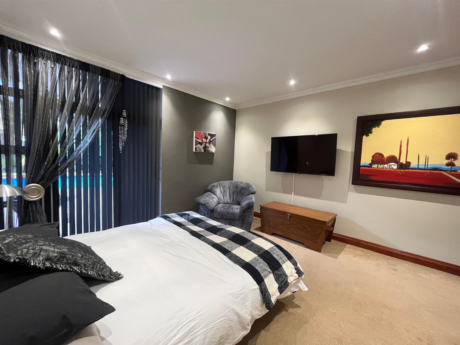 As you enter this serene and expansive property, you’ll be captivated by its charm. The meticulously maintained lawns, bordered by 50-year-old trees, create an inviting atmosphere perfect for entertaining. Host over 100 guests in the lavish indoor bar and entertainment area that opens onto a covered patio and health spa, complete with a sauna, Jacuzzi, and gym. The outdoor space features a sparkling pool and a tropical garden filled with tree ferns and clivias, redefining luxury living with an exclusive touch.