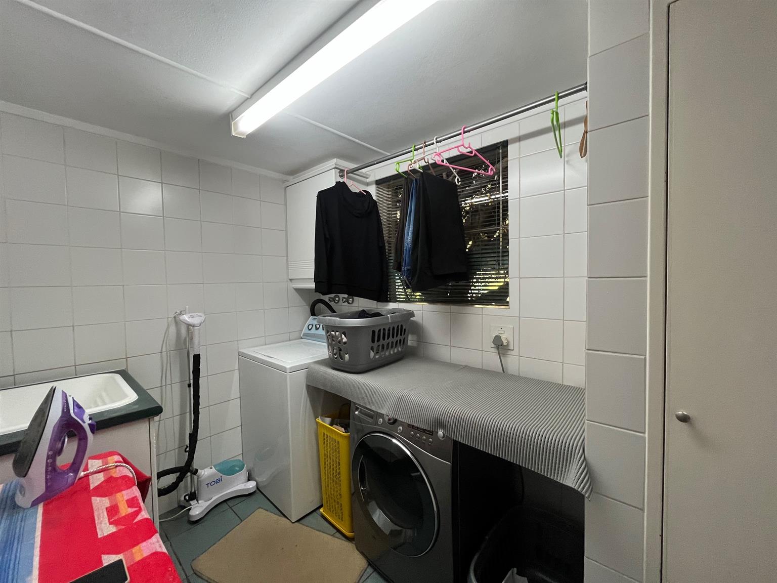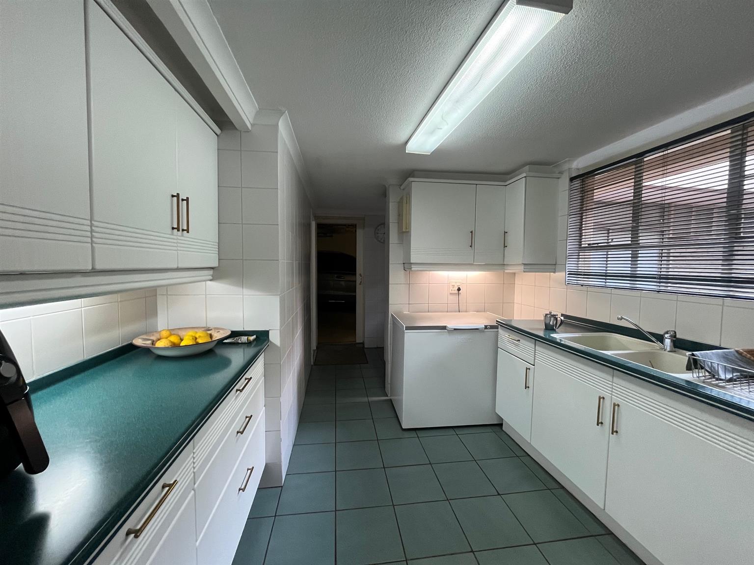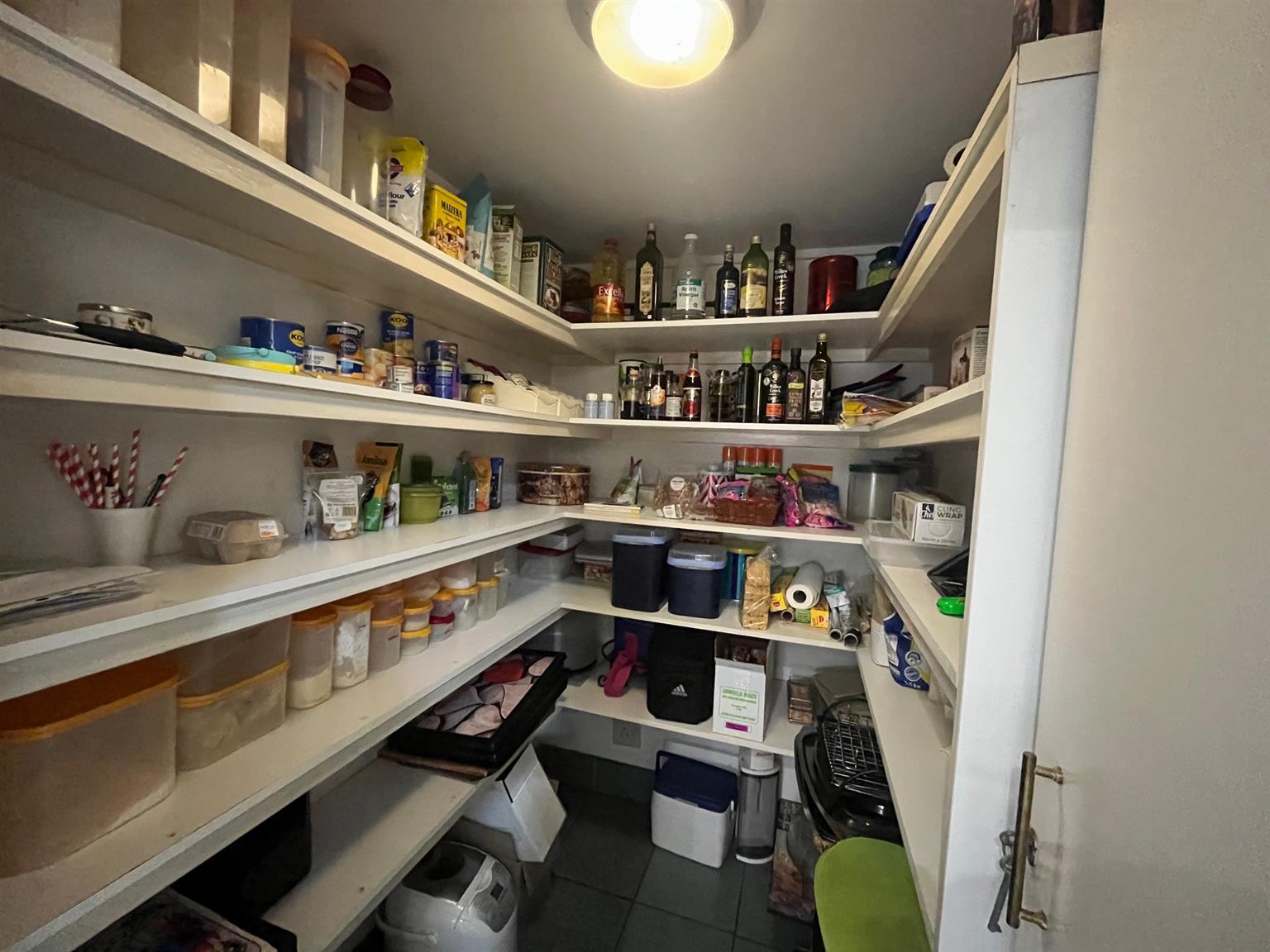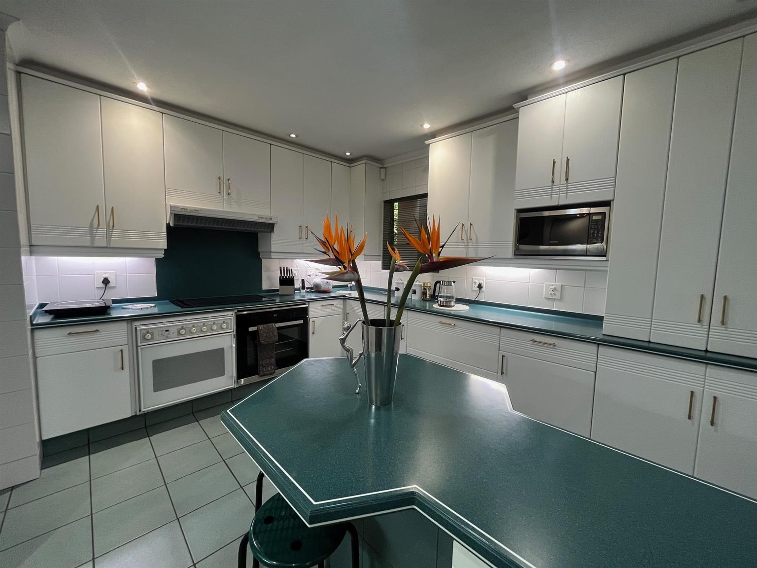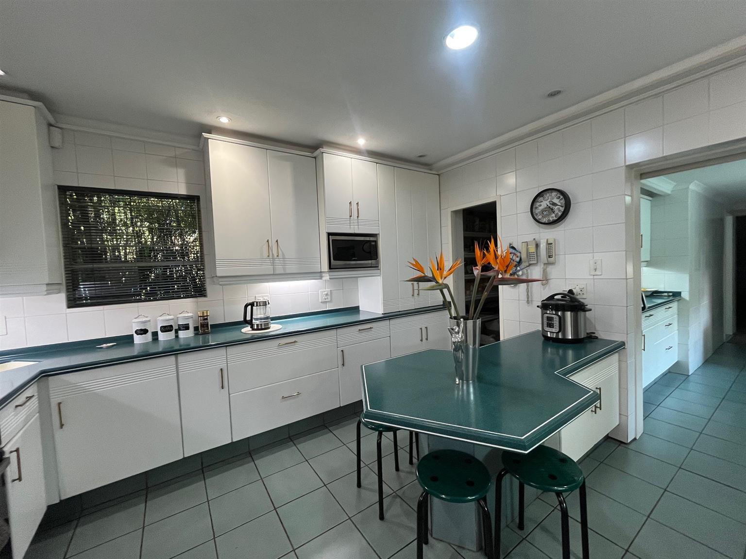 The well-equipped kitchen is spacious, featuring a walk-in pantry, a separate scullery, and a dedicated laundry area.