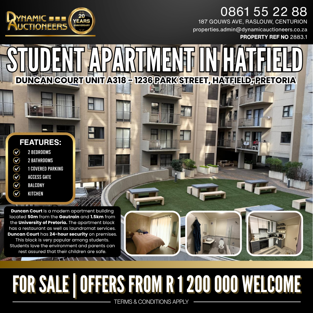 #HatfieldApartmentForSale #StudentHousingPretoria #UPAccommodation #GautrainLiving #DuncanCourt #PretoriaProperty #SAStudentLiving #InvestmentOpportunitySA #ApartmentForSale #DynamicAuctioneers #SafeStudentHousing #RealEstatePretoria #PropertyForSaleSA #StudentLifestyleSA #LockUpAndGo