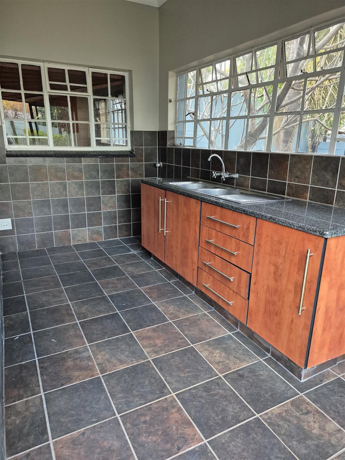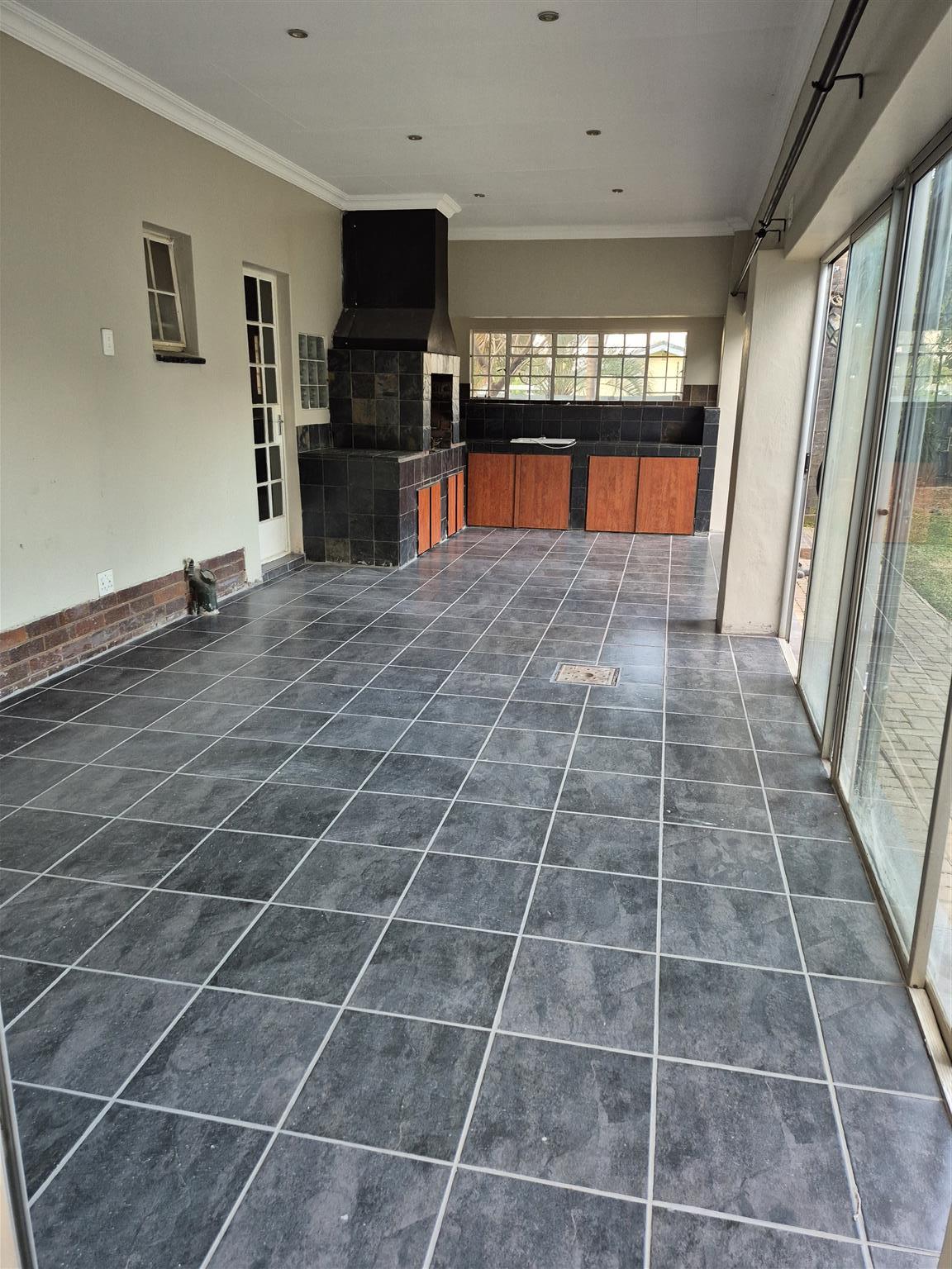 House with double garage, flat, staff quarter, study, entertainment area, store room, and carport to let.