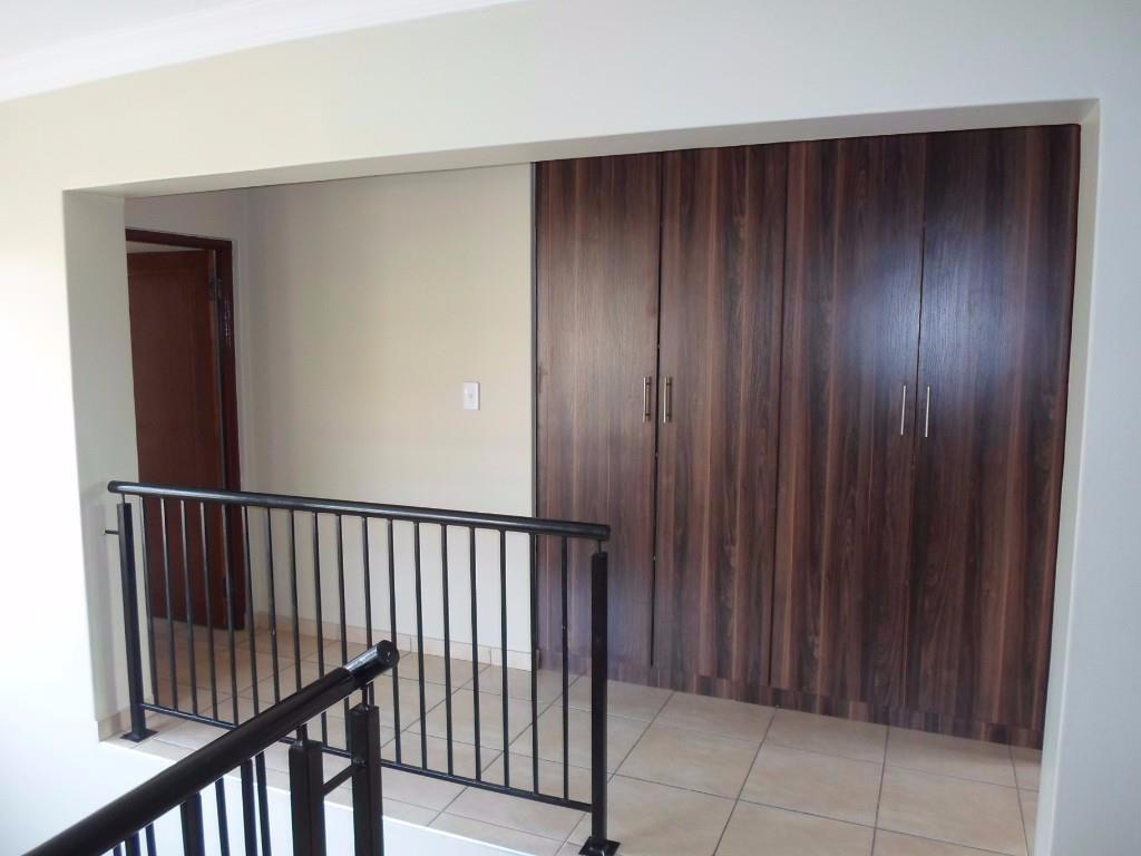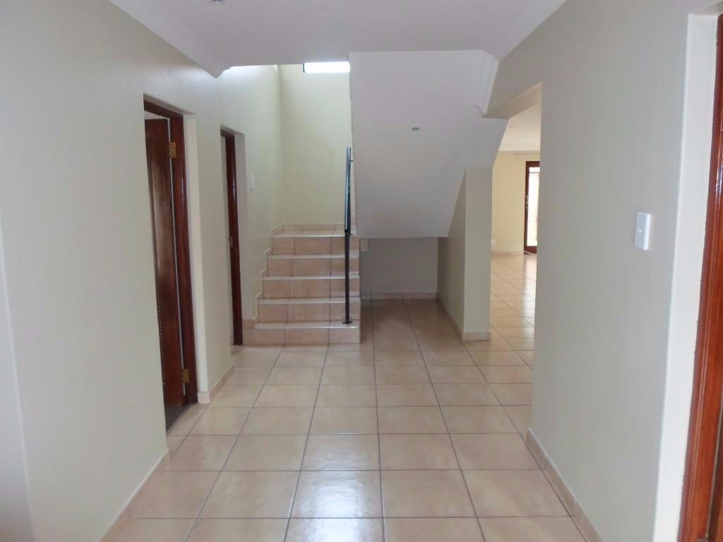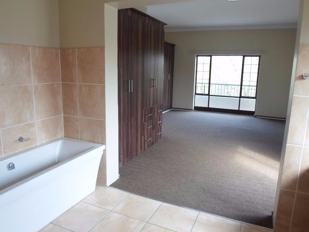 Spacious 4 bedrooms and 4 bathrooms. Large open plan lounge and dining room beautiful kitchen with a scullery. Separate Study and guest toilet. All around balcony from the main bedroom. Small garden. Servant room with shower and toilet. Double automated garage with parking space for 6 cars. Built-in braai with undercover patio. Pet friendly with approval from the Body Corporate. Electricity, water and sanitation for own account.