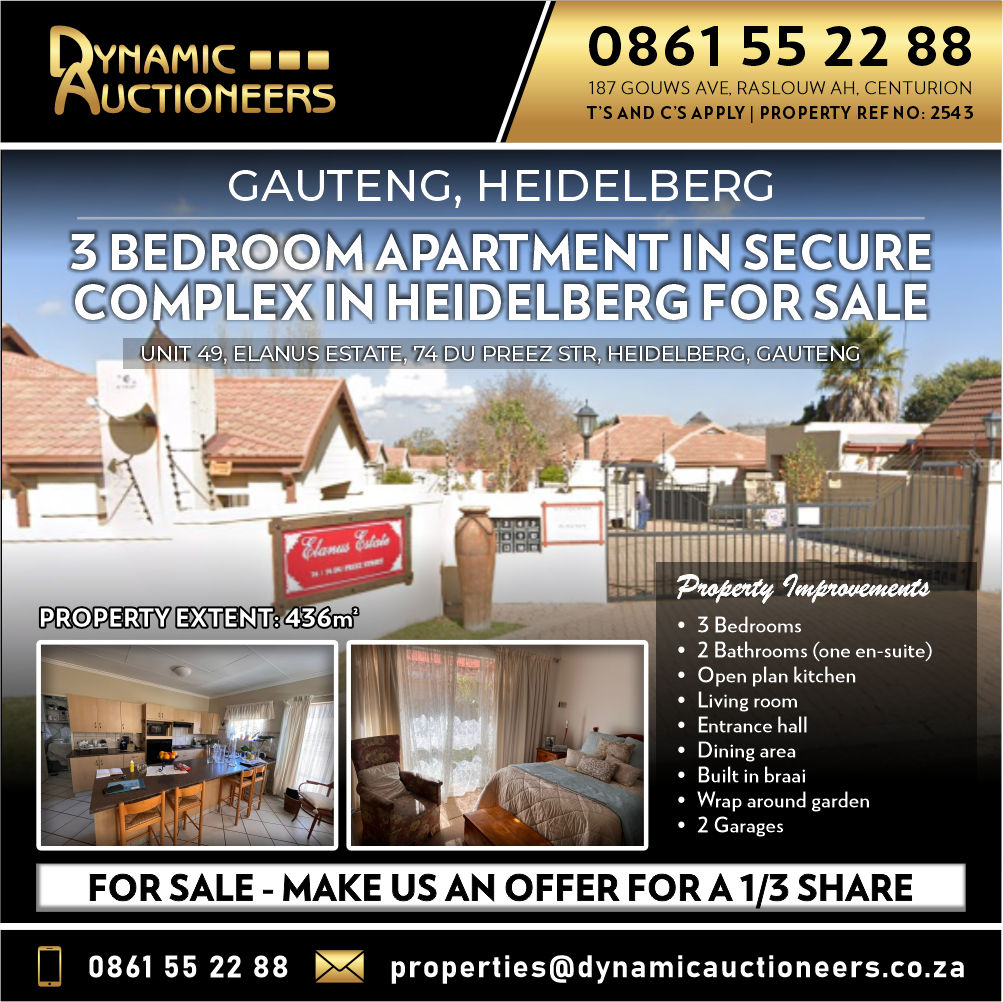 3 Bedroom Apartment In Secure Complex In Heidelberg For Sale