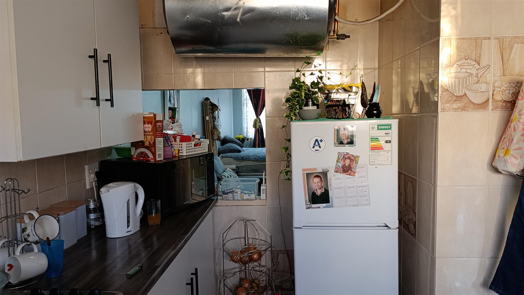 The apartment includes one bathroom with a bath and hand shower, plus a separate toilet. Two generously sized bedrooms complete the home, each offering plenty of built-in cupboard space.