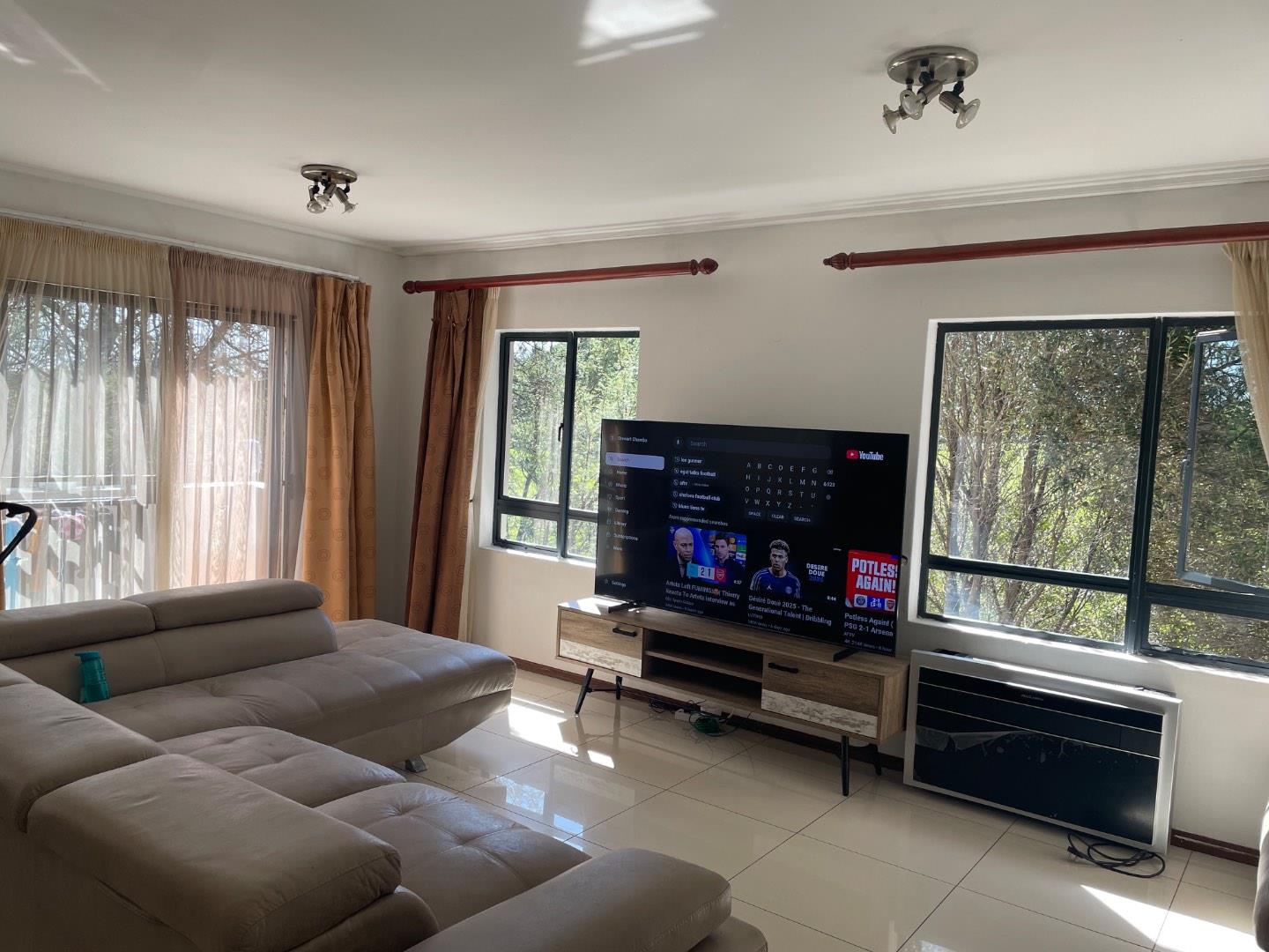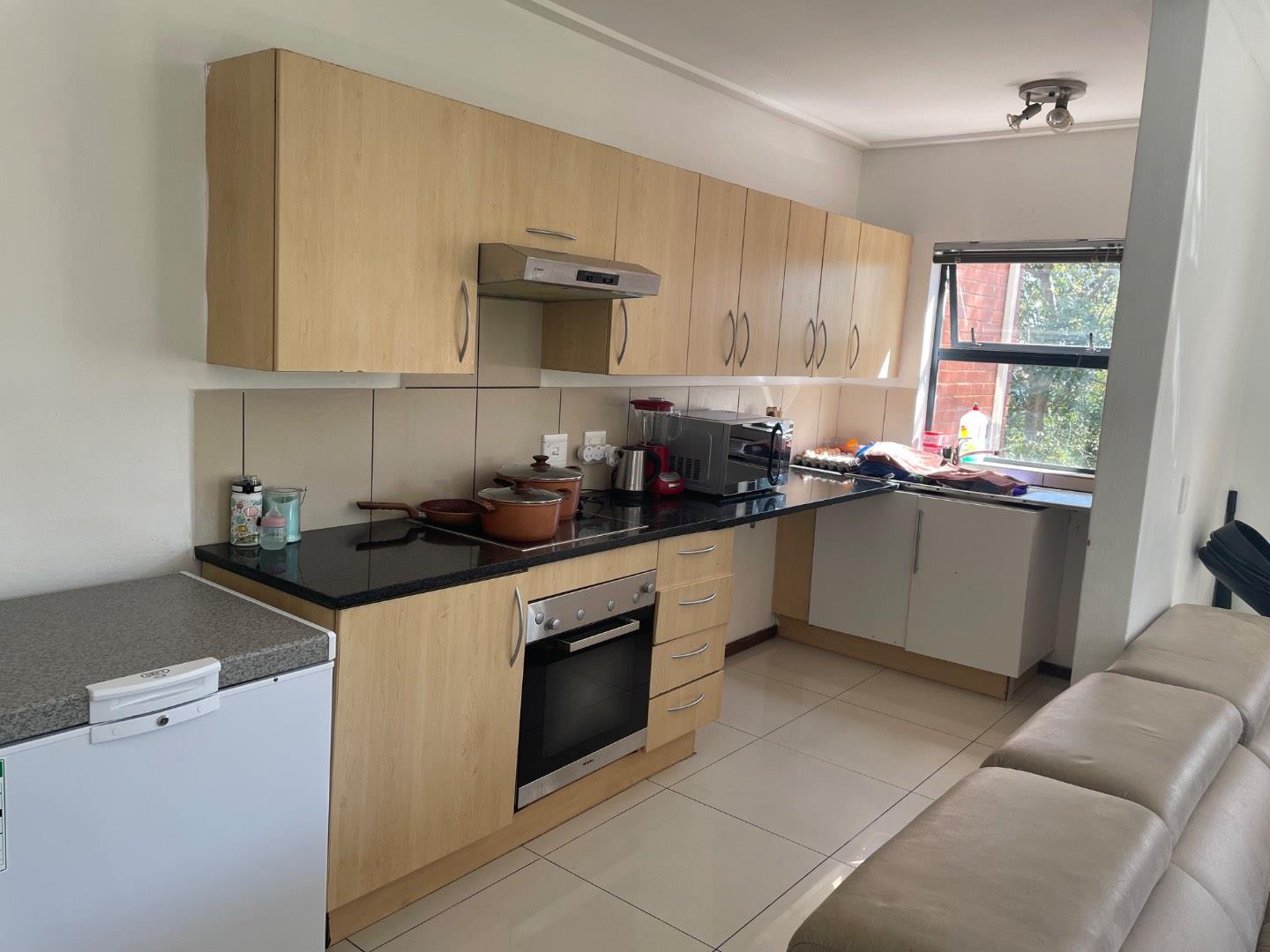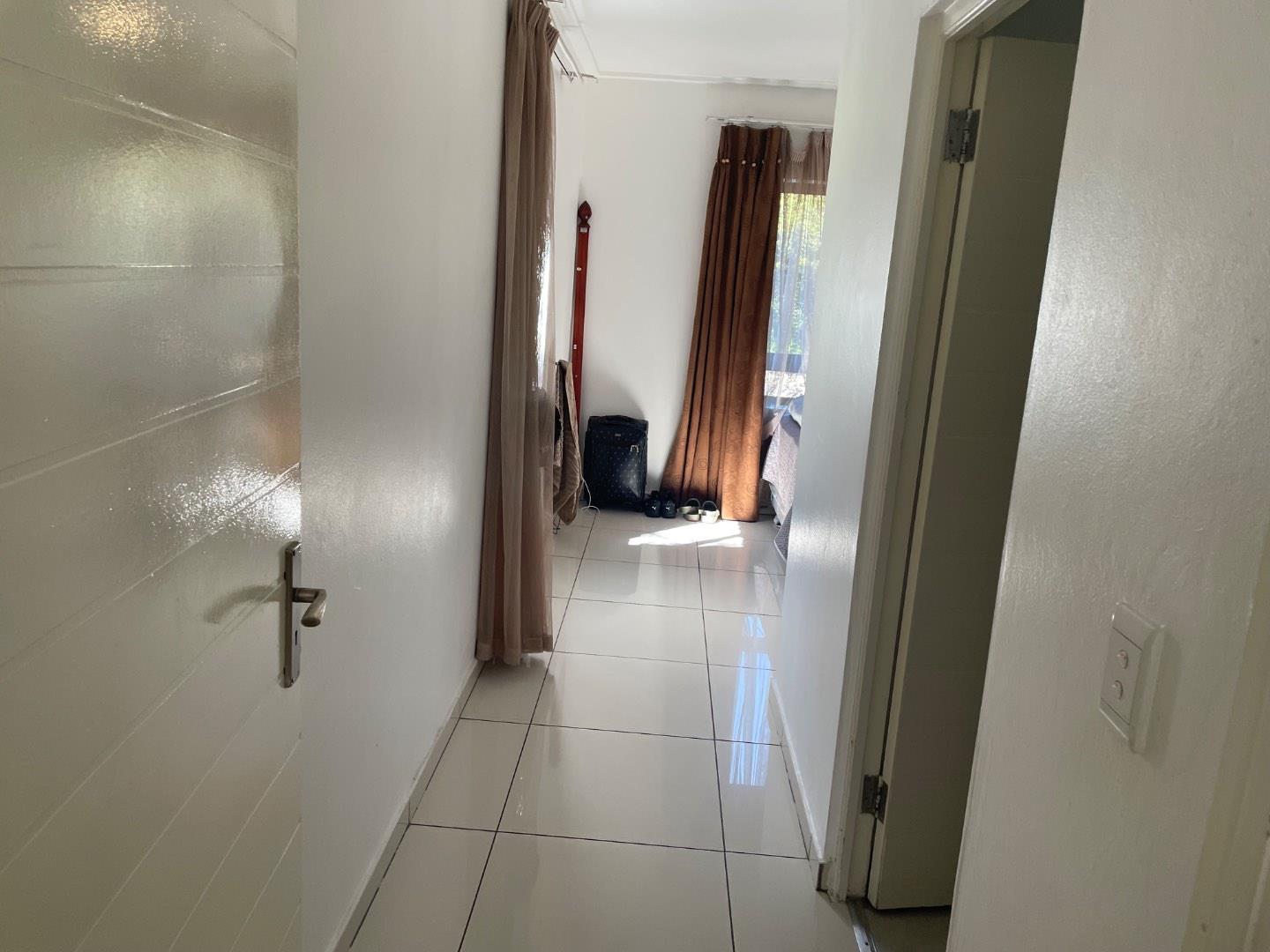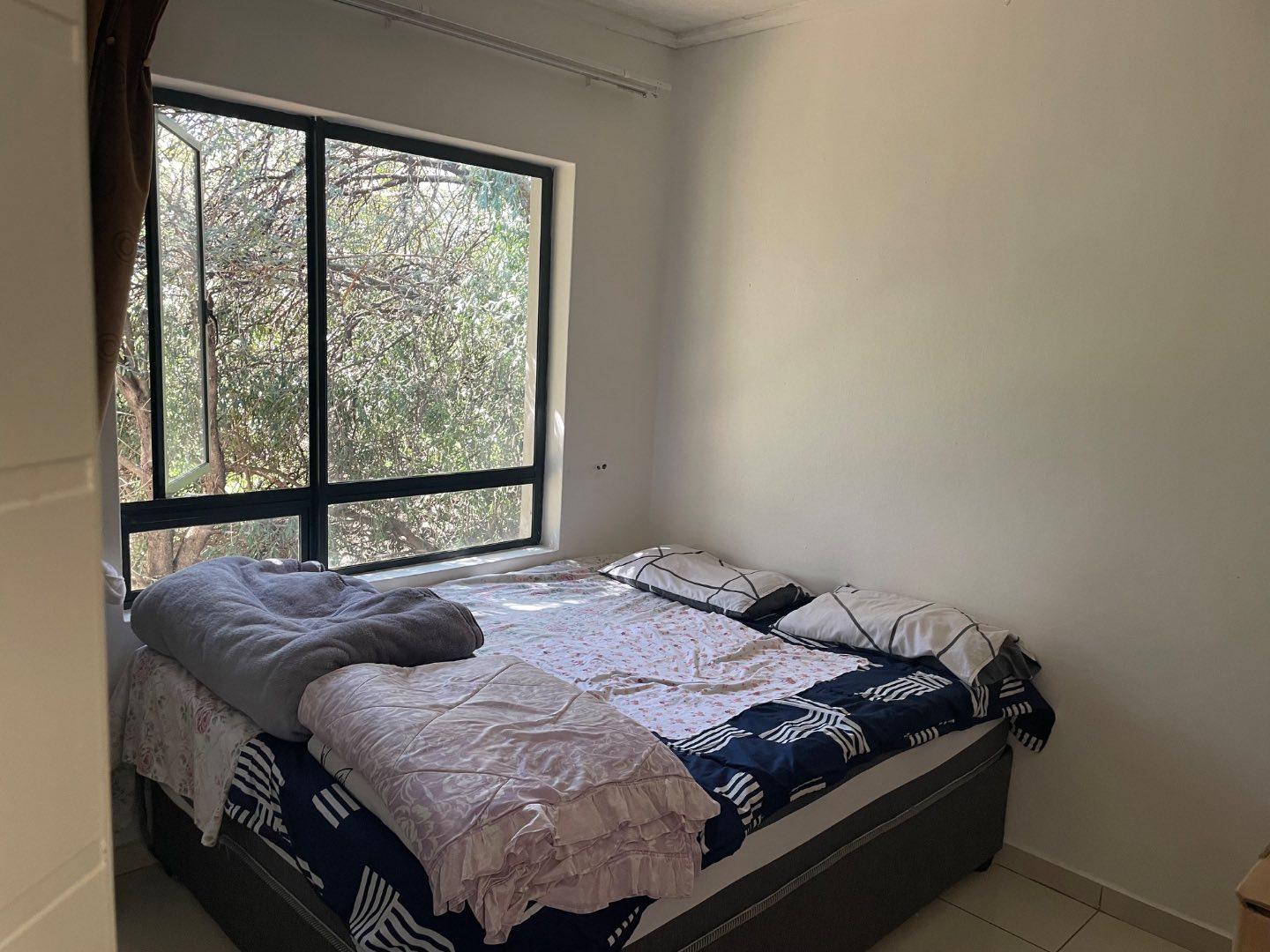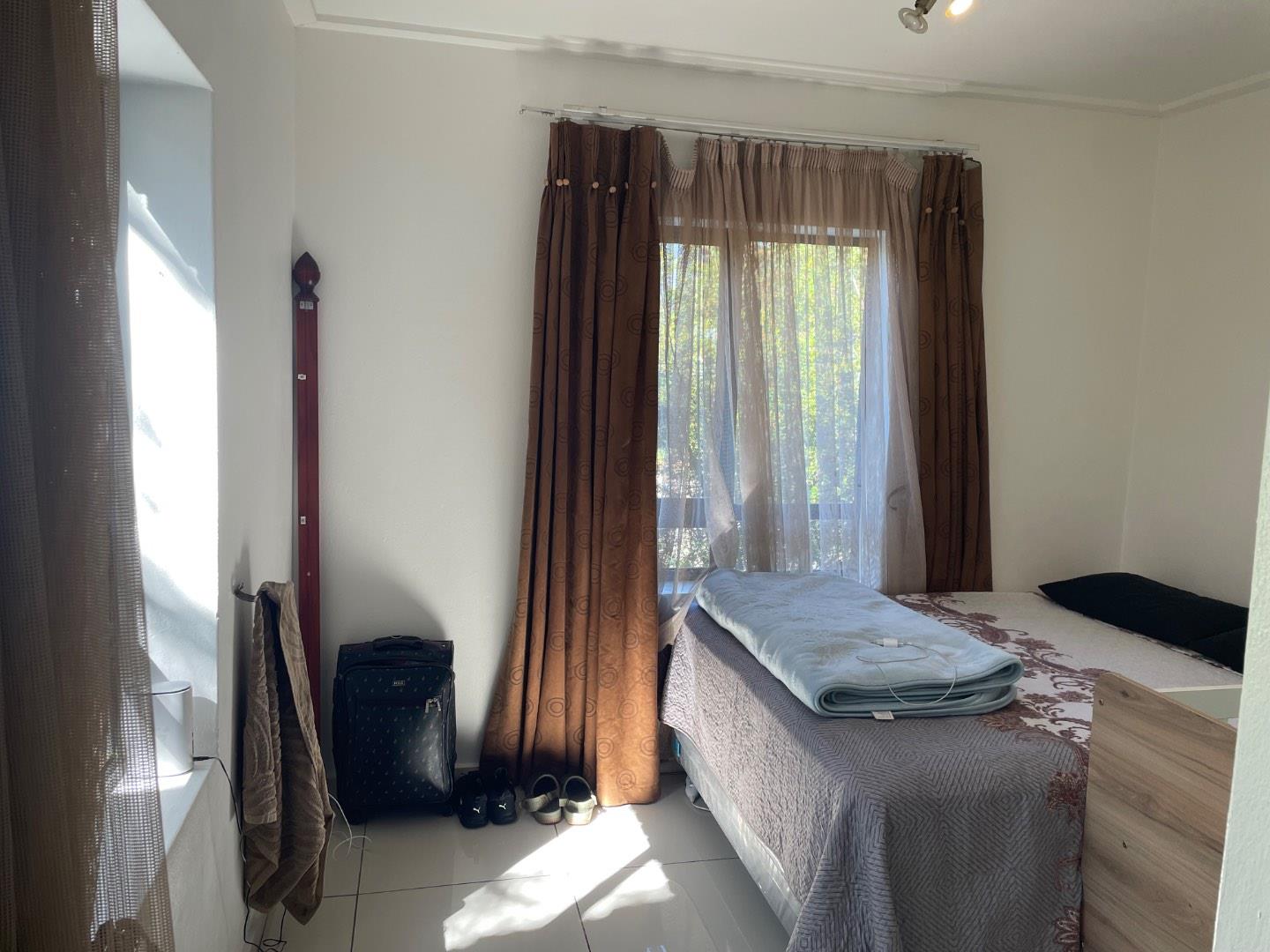 The main bedroom offers generous cupboard space and is filled with natural light. It also includes an en-suite bathroom for added convenience. The second bedroom is spacious, fitted with built-in cupboards, and features tiled flooring, creating a warm and cozy atmosphere.