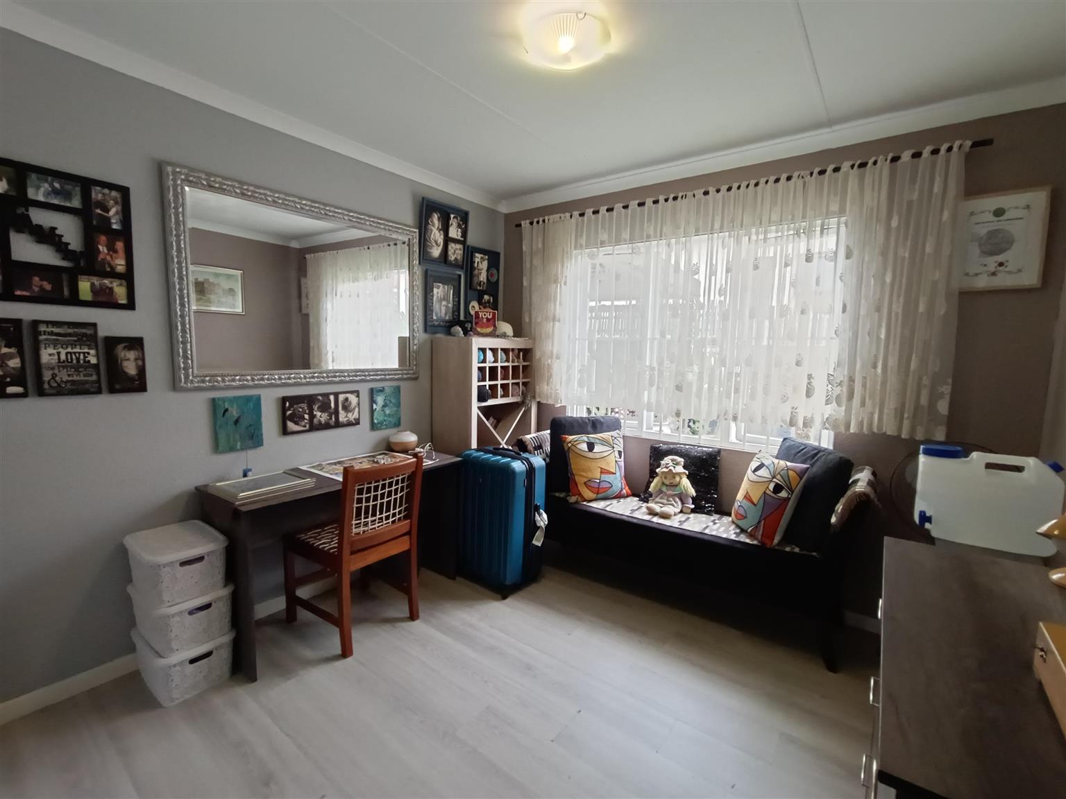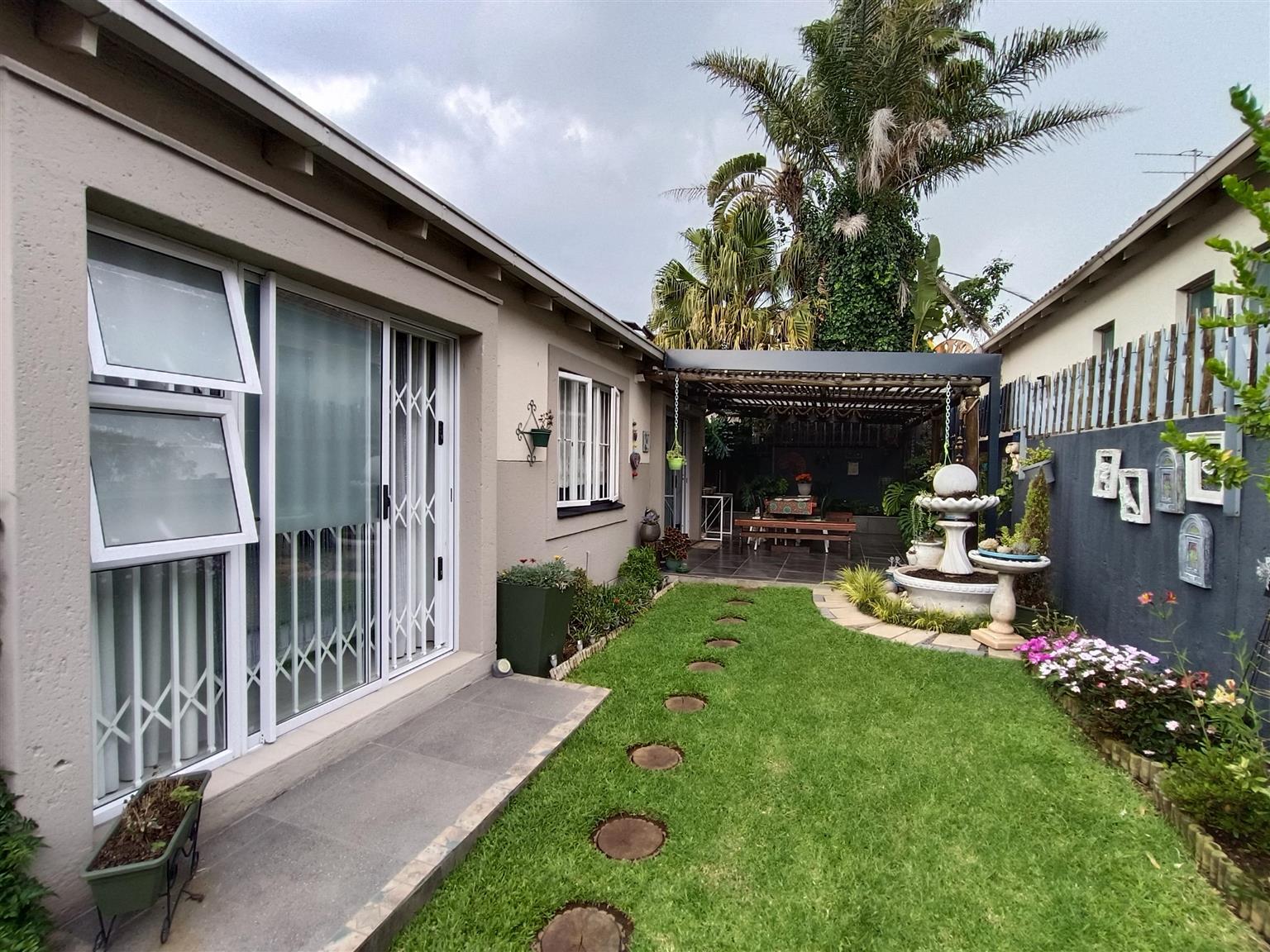 This 2-bedroom, 2-bathroom cluster in one of Bromhof’s most sought-after complexes has been maintained with exceptional care and finished with a creative eye, resulting in a space that feels both sophisticated and warmly lived-in. The open-plan kitchen and living area flow effortlessly onto a generous covered patio, overlooking a beautifully manicured private garden—an ideal setting for quiet mornings or relaxed entertaining. The kitchen is equipped with a gas/electric stove combo, providing both convenience and efficiency.