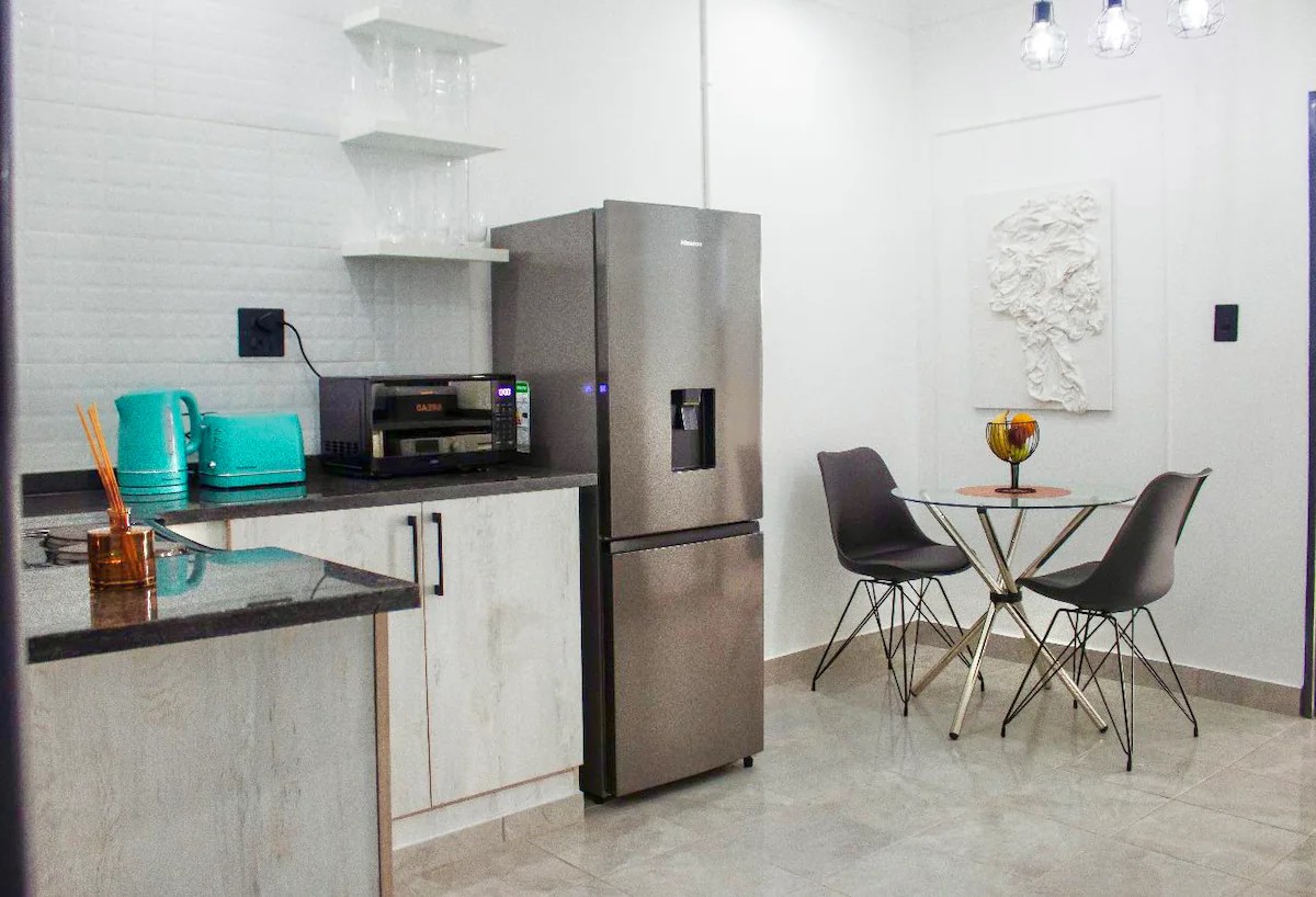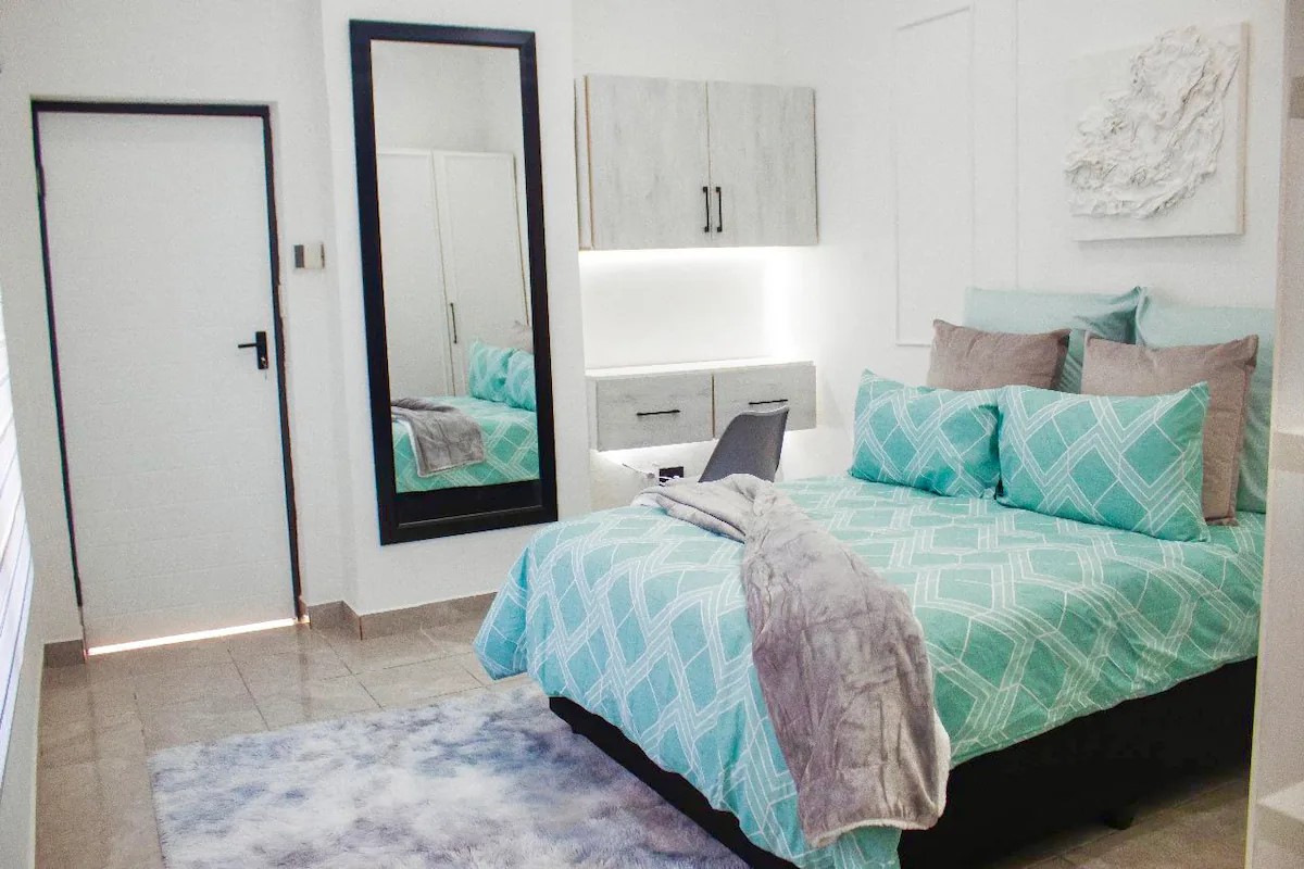 This serene, centrally located retreat features two spacious bedrooms—one with a double bed and the other with two single beds—along with a bathroom and a fully equipped kitchen. Enjoy a cozy lounge with WiFi and a smart TV. Outside, you'll find a swimming pool and a barbecue (braai) area, plus plenty of parking for you and your guests.