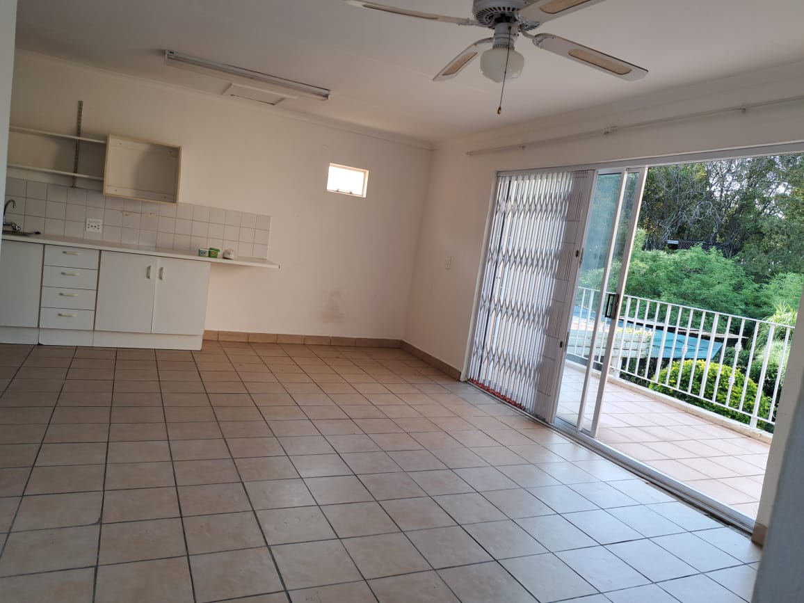 - Kitchen with ample cupboards and space for a standard size fridge and 1 wet appliance.