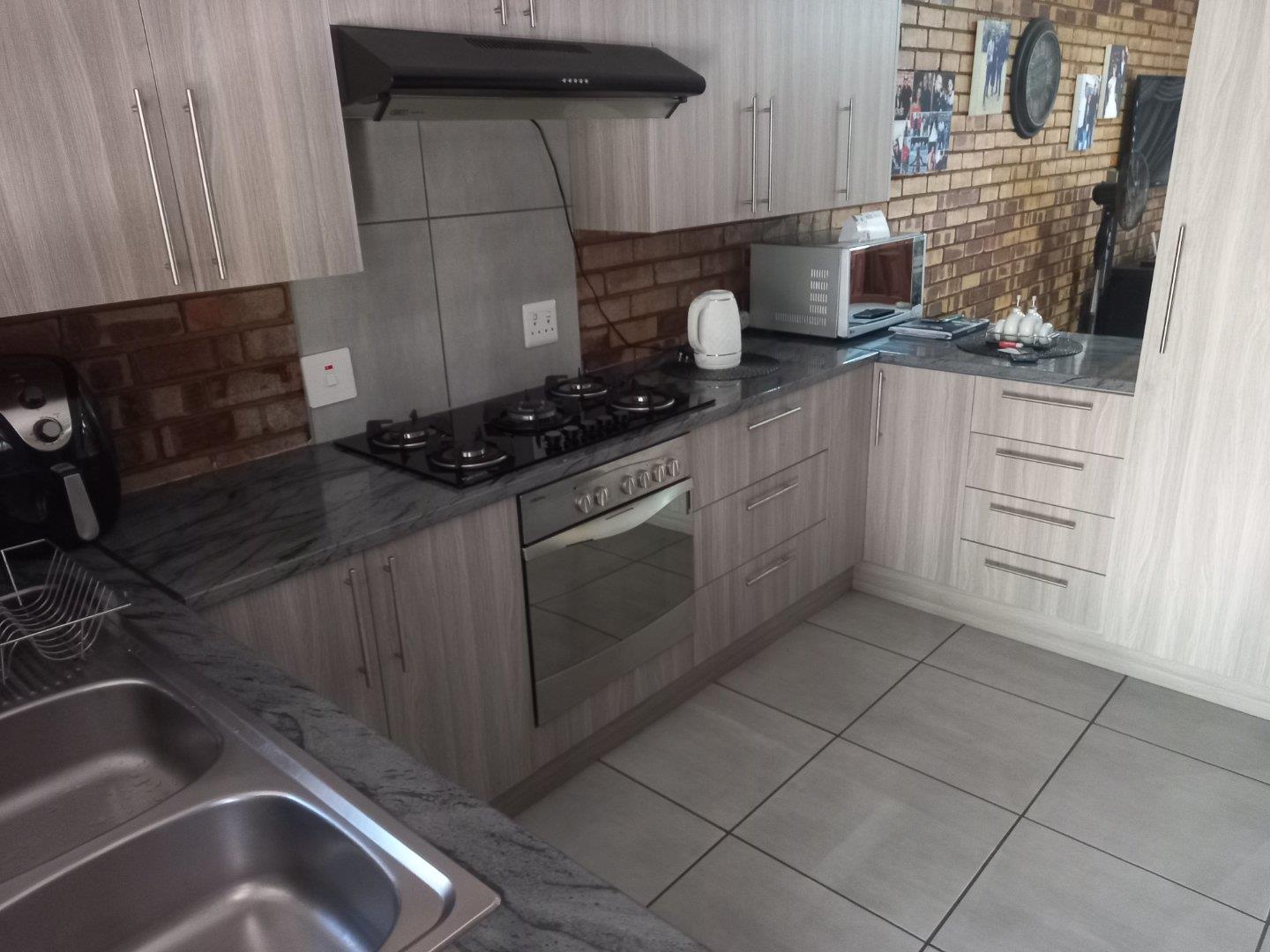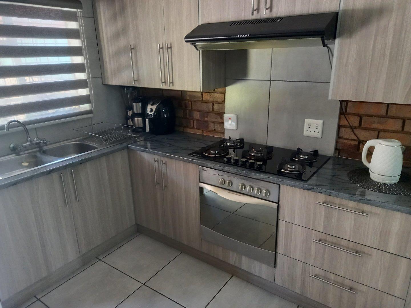 This beautiful townhouse is in a secure complex and consists of 2 bedrooms with tiled floors & BICs. Lounge has tiled floors. Kitchen offers tiled floors, gas stove, extractor fan, BICs. Bedrooms have tiled floors and BICs. Small stoep area at front door. Security gate on front door and back door. Sink covered âcarportâ at back door.