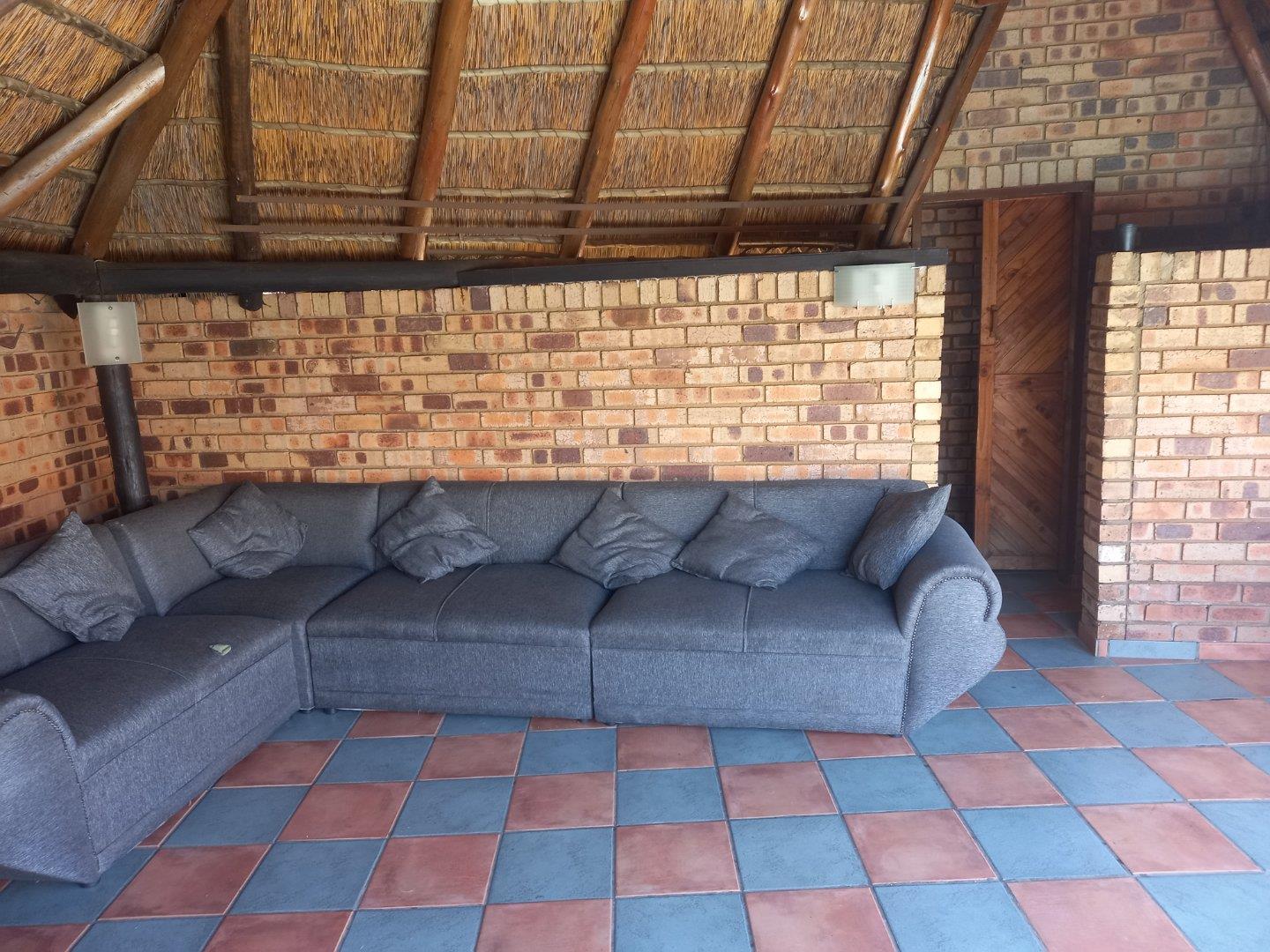 Outside is a wooden storeroom used as a laundry. Large lapa with toilet, basin & lounge area. Sparkling pool. In front is a single garage, sink covered carport for two vehicles, small storeroom.