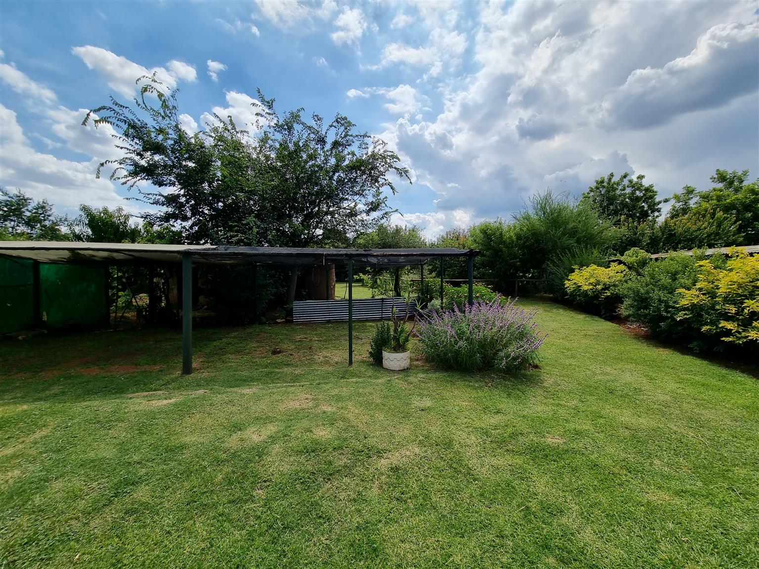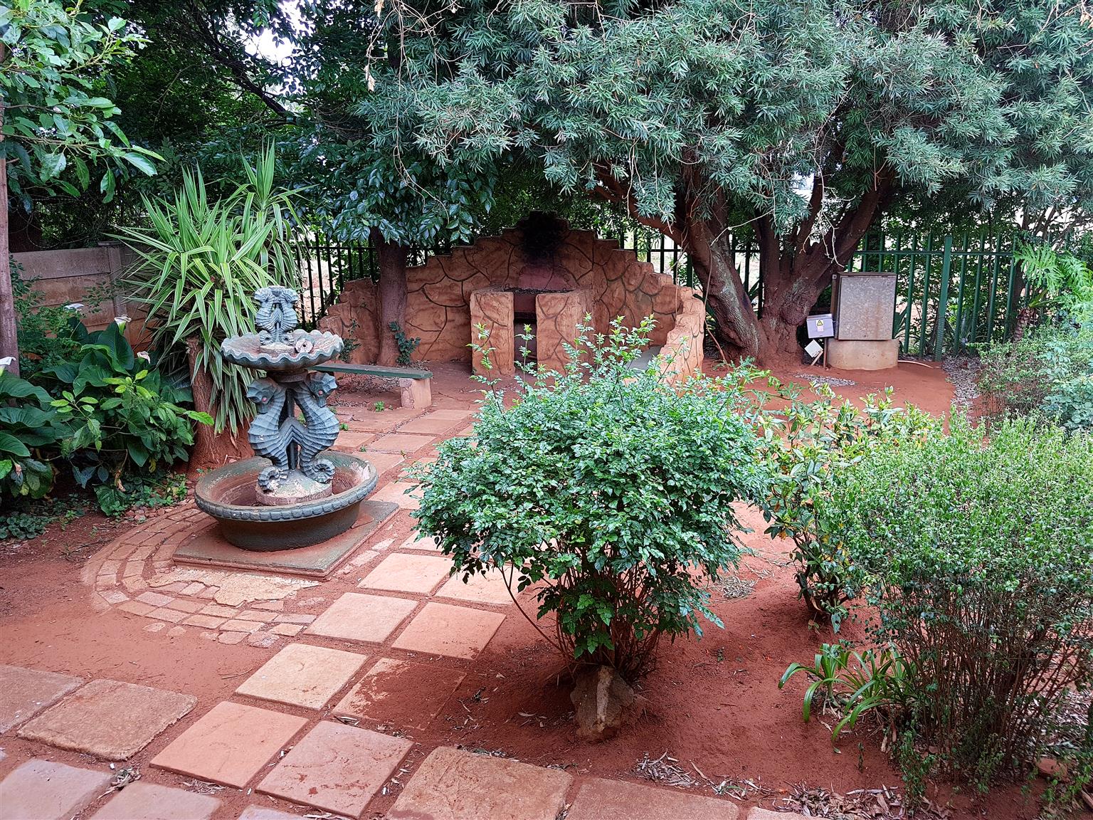 Mooi tuine met pragtige sierbome. Kampe vir diere, 2 hektaar pekan neut bome geplant, weiding toegespan met sterk heining.