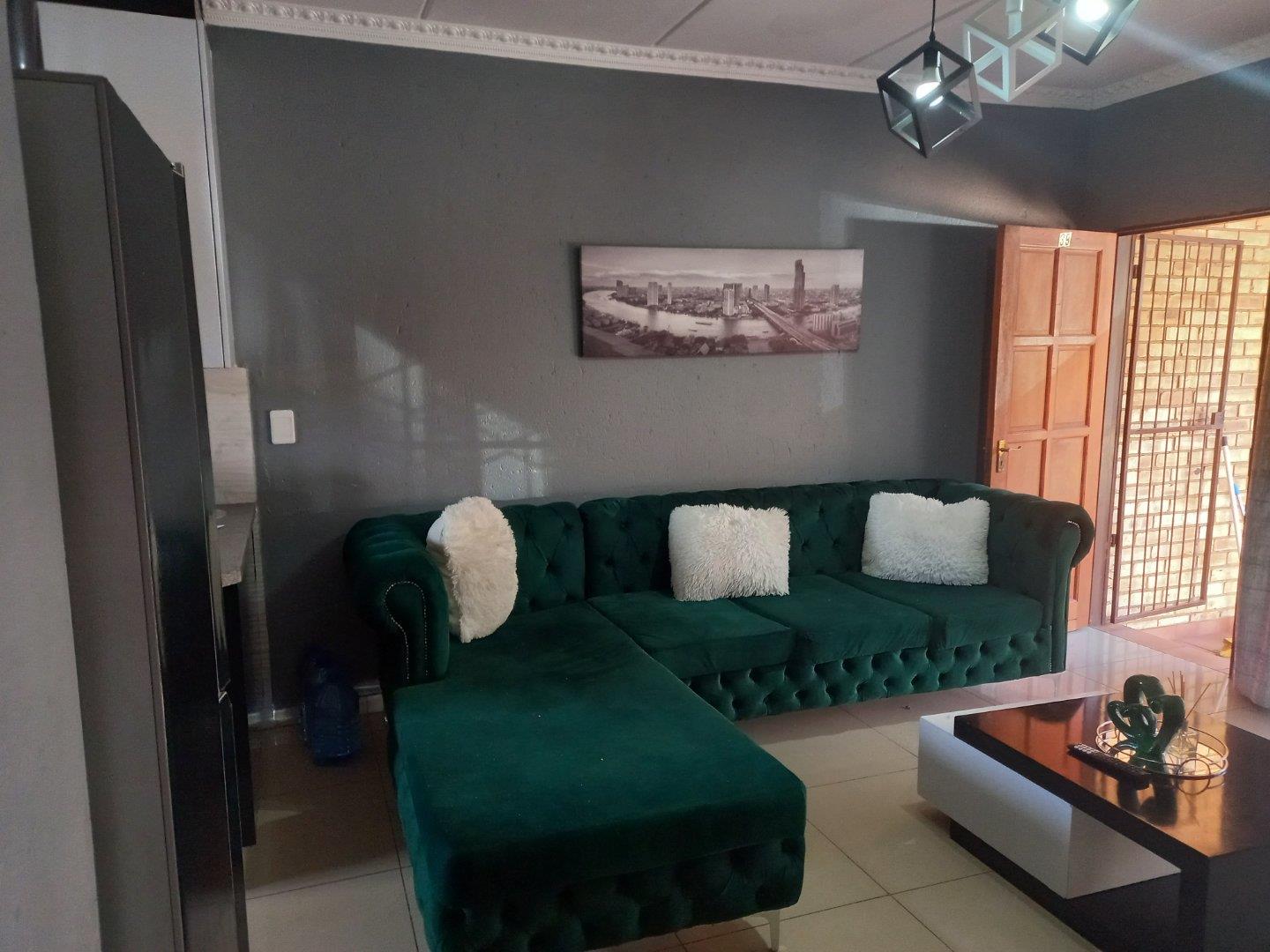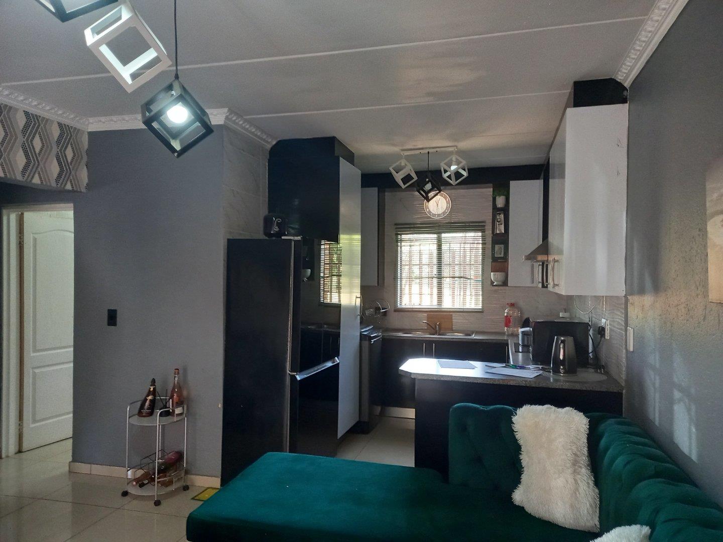 This stylish and renovated apartment is located in a well-kept complex in Helikon Park, offering open-plan lounge with contemporary lighting and flows into a sleek kitchen fitted with modern cupboards, a stove, oven, and extractor fan. The apartment features two spacious bedrooms with built-in cupboards and laminated flooring. A full bathroom includes a shower, toilet, basin, and bath.