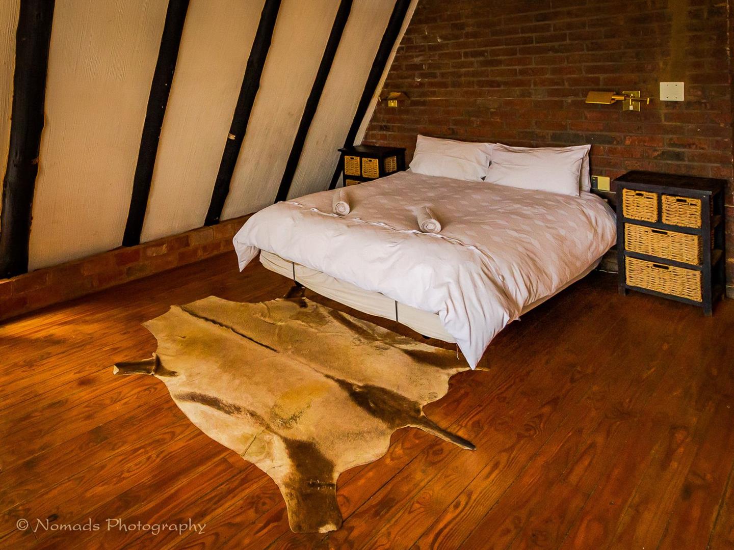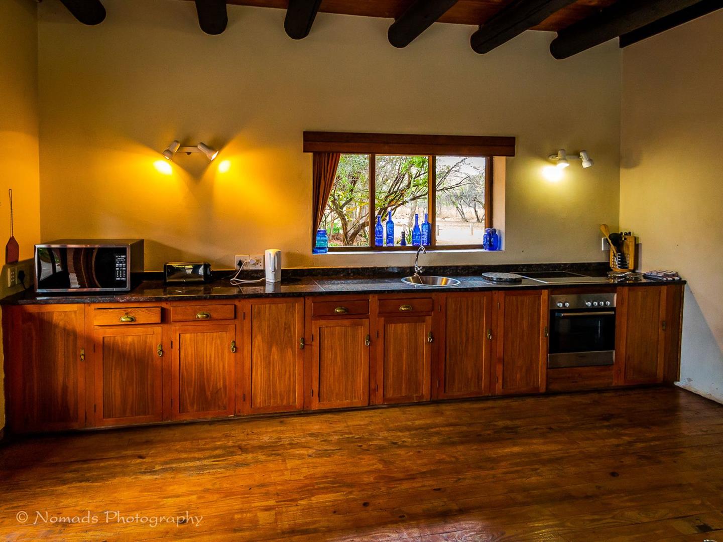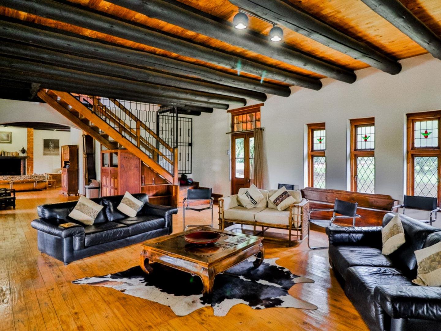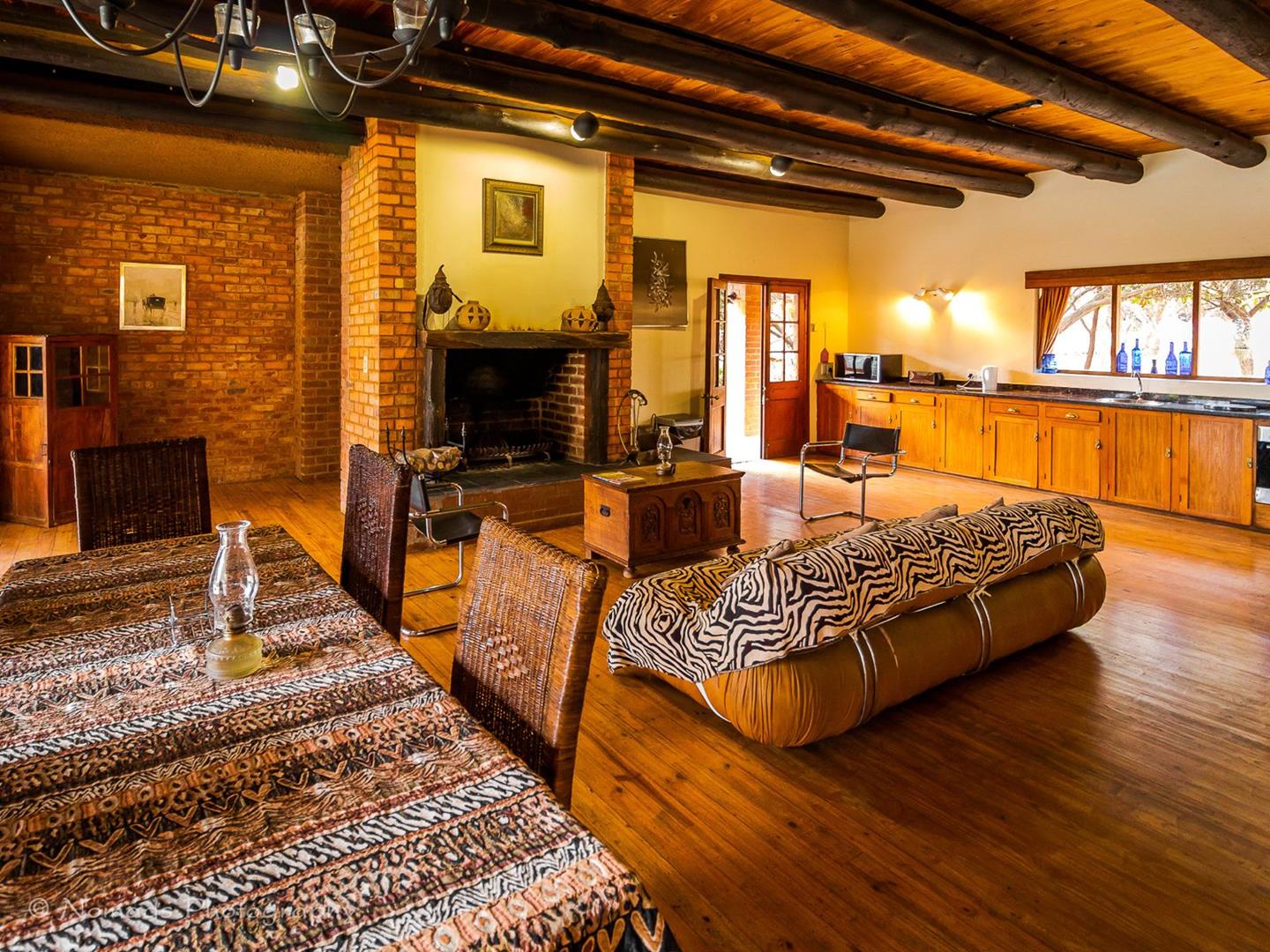 The Lodge is a large double-story house. The ground floor consists of a large 200m2 open-plan living and dining area, a large fireplace and a reading corner. The spacious open-plan kitchen has granite worktops, a glass top hob with an oven, a microwave, and a fridge.