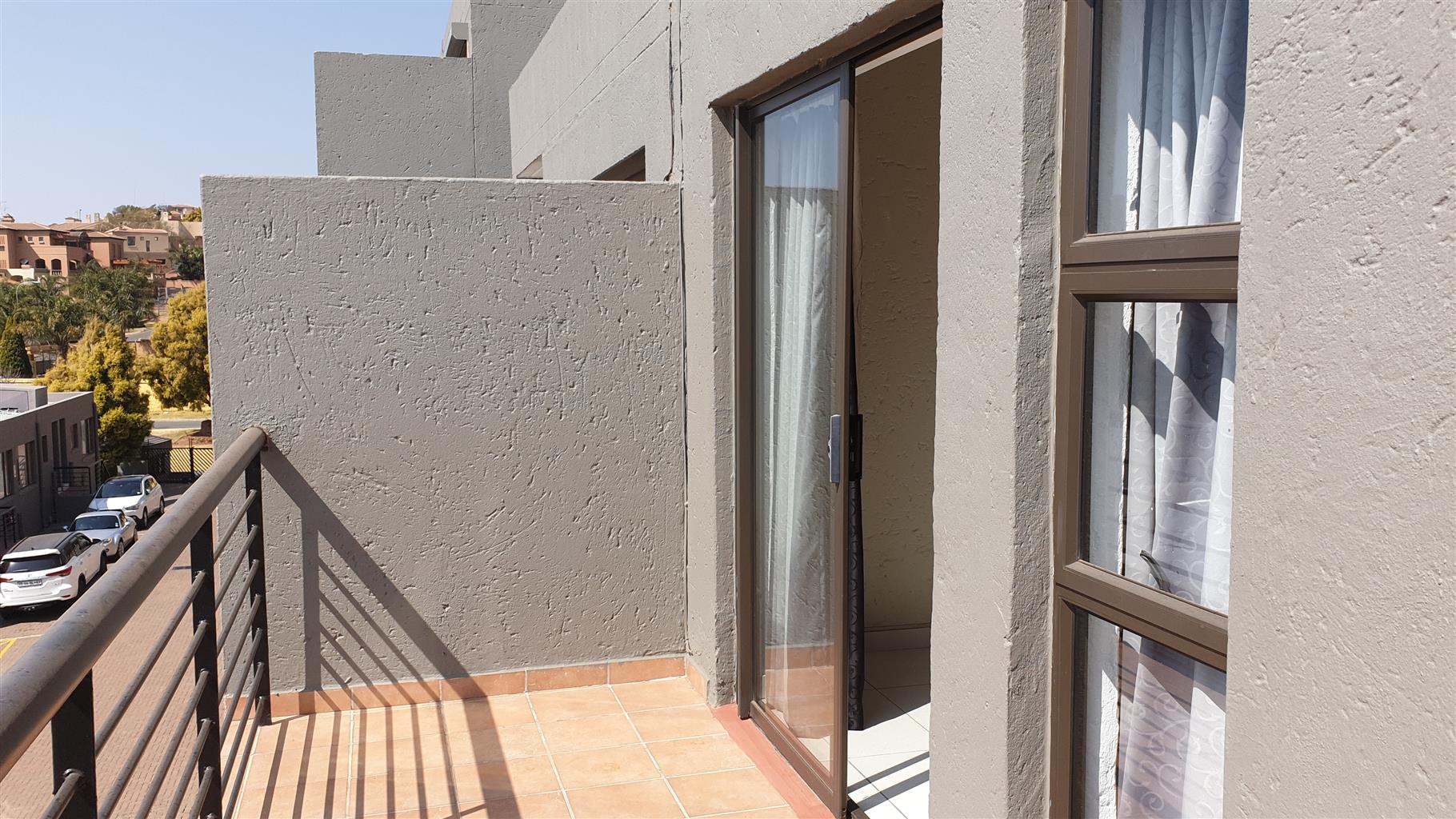 Balcony has extra french door installed to open up the pattio.