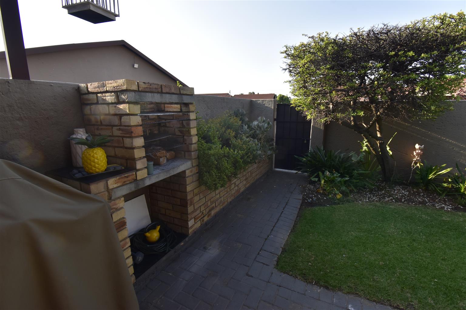 Outside, this pet-friendly home features a neat, low-maintenance garden with a built-in braai and is perfect for enjoying the outdoors. The unit also offers a single garage, which provides secure parking for one vehicle and a single carport for added convenience. The garage has a sliding door side entrance and built-in cupboards, which can also be used as an office and/or studio.