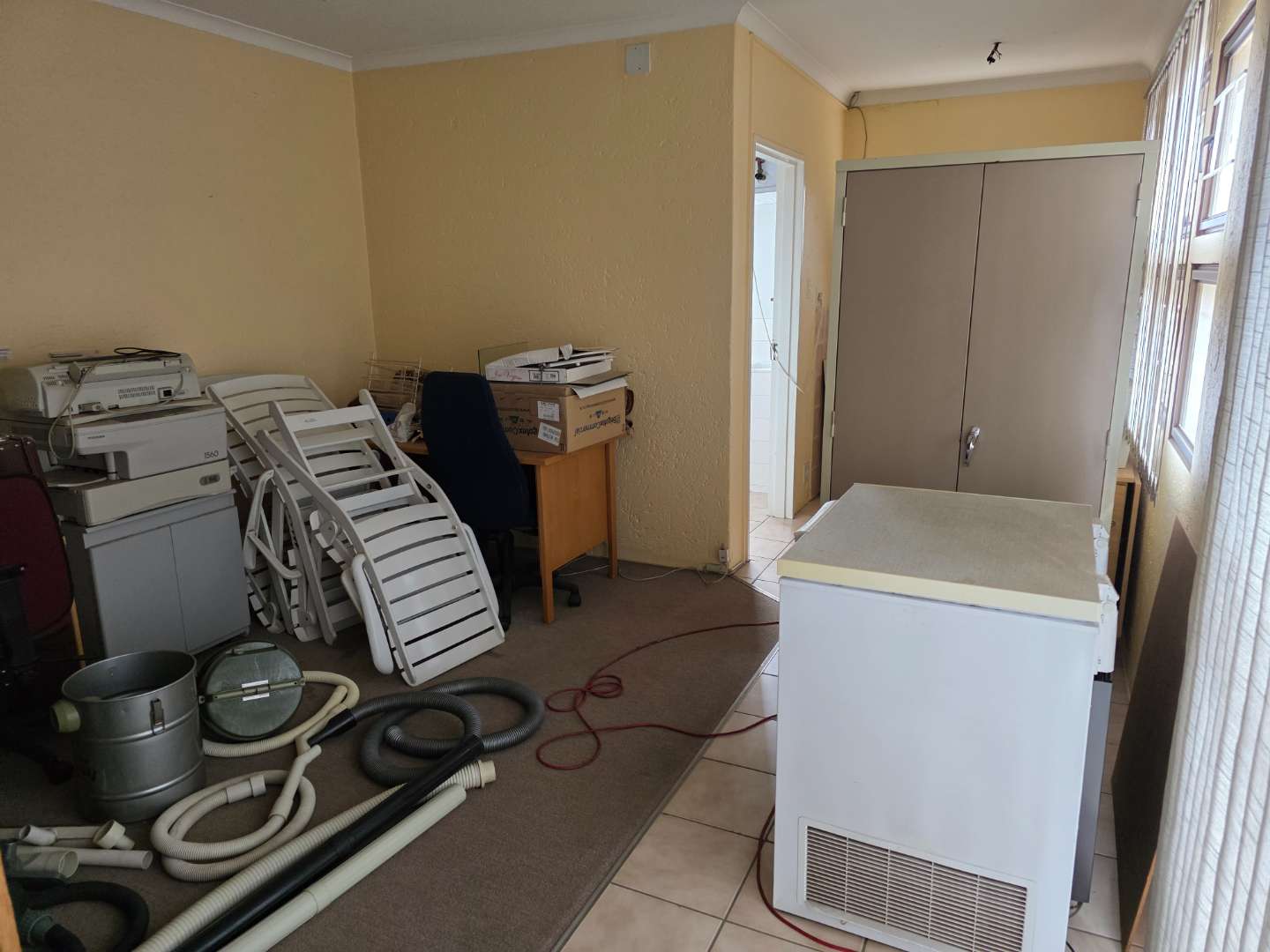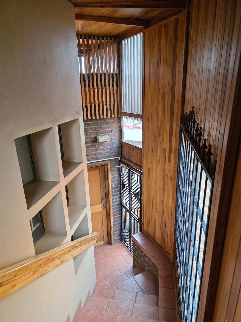 The other gate leads to a staircase that opens up to a very large office space. There is a reception area, 2 separate bathrooms (toilets and basin), a kitchen 2 separate offices and a large office. One can easily change and redesign this area to add more bedrooms or a flatlet for a passive income. The staircase of these offices also leads down to the front door. Almost like an arch staircase with a lot of sunlight peering through the windows.