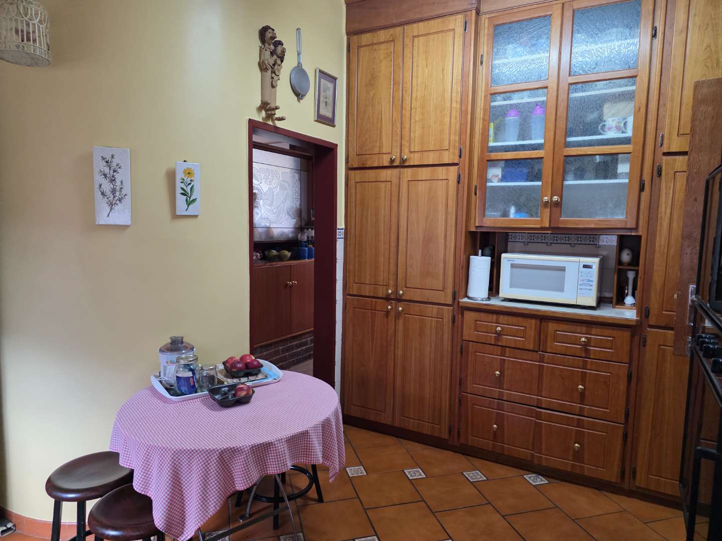 Coming back down the staircase back to where the washing room is, the back door opens up the scullery where one washes dishes and stores an extra washing machine or tumble dryer. Exiting this room, one is welcomed into a cottage like kitchen with ample cupboard space. There is enough room to add a deep freezer, a fridge and microwave. This kitchen has a free-standing gas stove and oven. It also has x2 built in ovens. A Perfect kitchen for a family that loves to gather around the dining room table surrounded with home cooked meals.