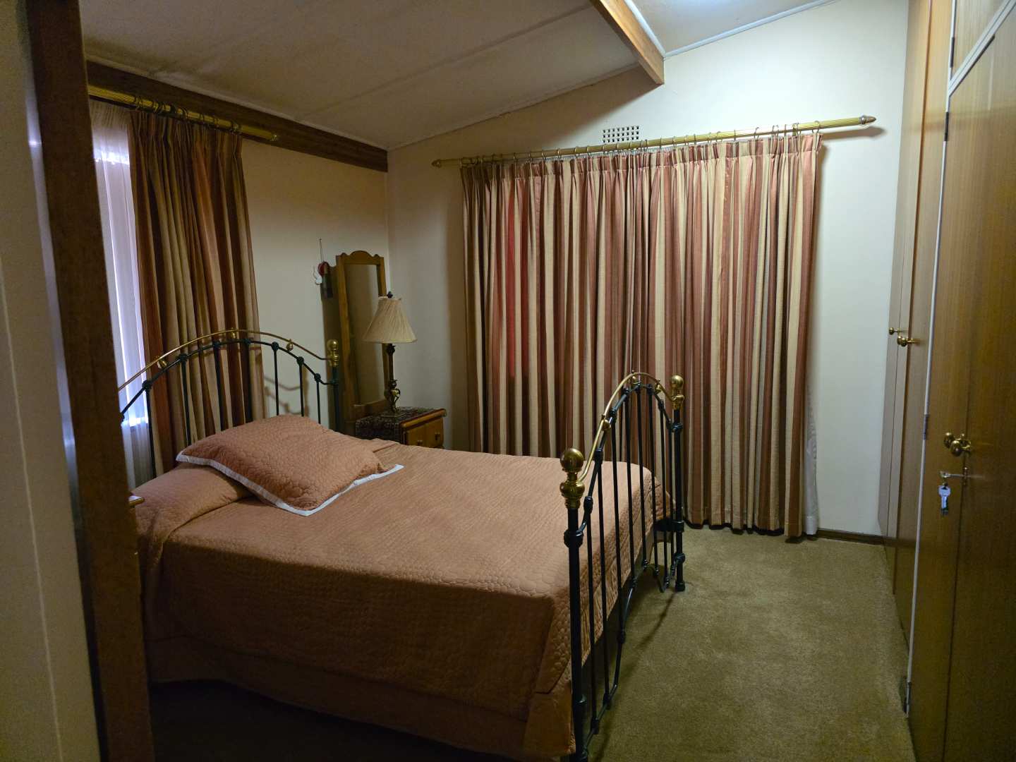 Just off the dinging room and lounge area is another door with beautiful glass-stained windows that leads to 2 bedrooms with built in cupboards, a full bathroom and a linen cupboard.