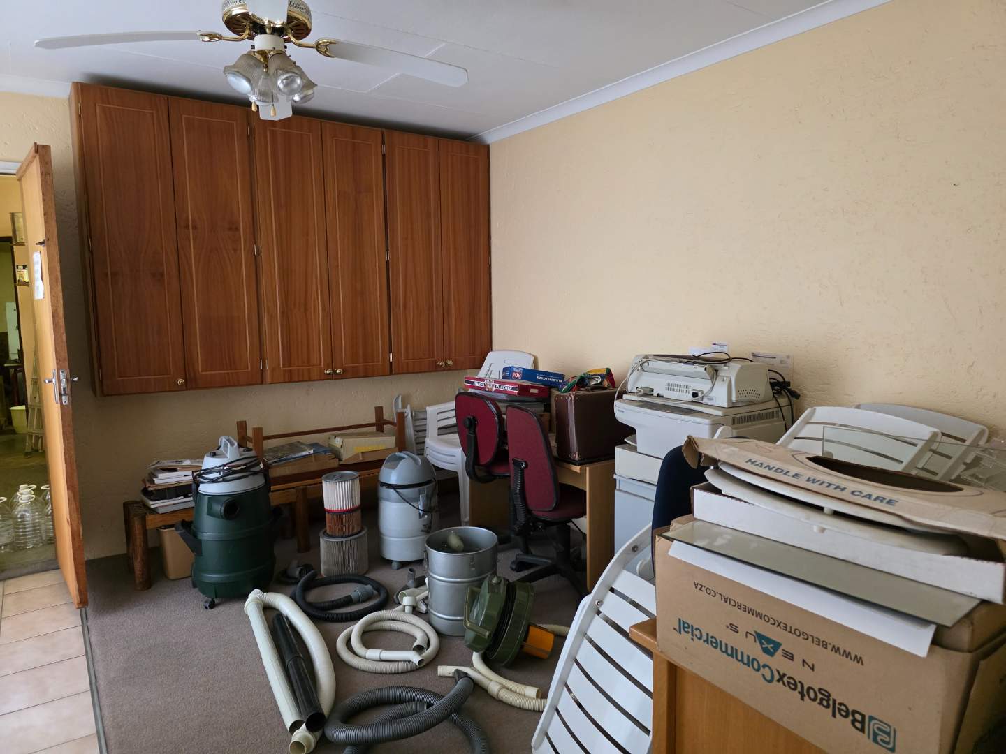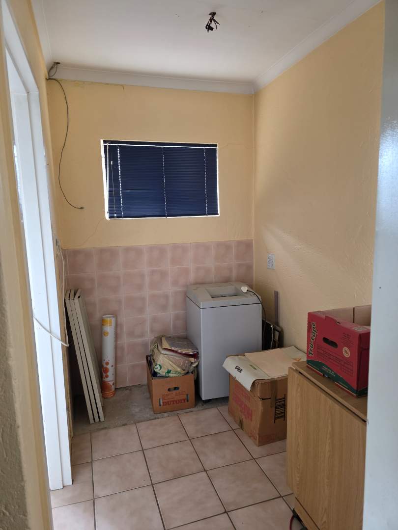 Leading off the garage there is a door that leads down a passage to a bachelor bedroom with bathroom, that consists of a shower, toilet, basin and the geyser. There is space to build a small kitchen. This room also has sliding doors that open up to the courtyard that has a thatch braai area. This room would be considered the 4th bedroom or teenage pad. Or one can rent it out for some continuous income.