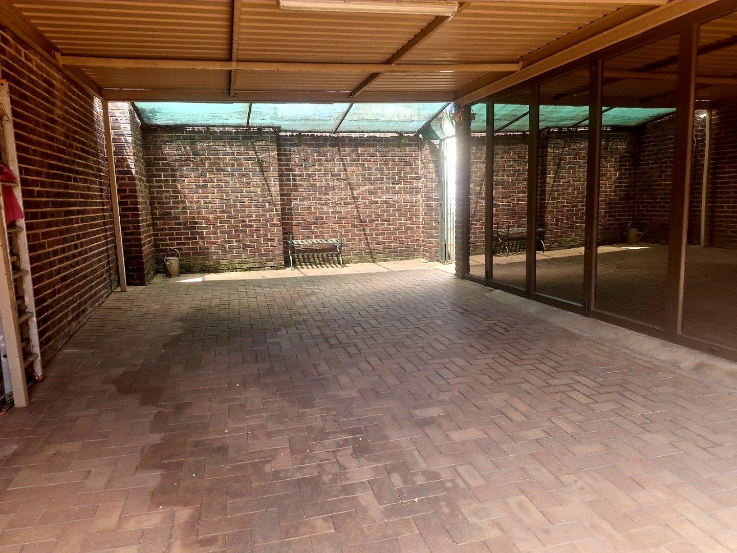 The well maintained front garden is a lovely size with green lush grass, beautiful flowers, hedges and trees attracting bird life. With its neat paving, its perfect for parking space or even children riding their bicycles. Beyond the 2nd gate, there is more parking space under a large carport (perfect for storing ones caravan) as well as a double garage. The double garage has added stacking doors Infront of the double garage door. If one is wanting to open up a small dance studio or a Moms and Tots/Top Tots business, the ideas are endless, this is the perfect space for it.