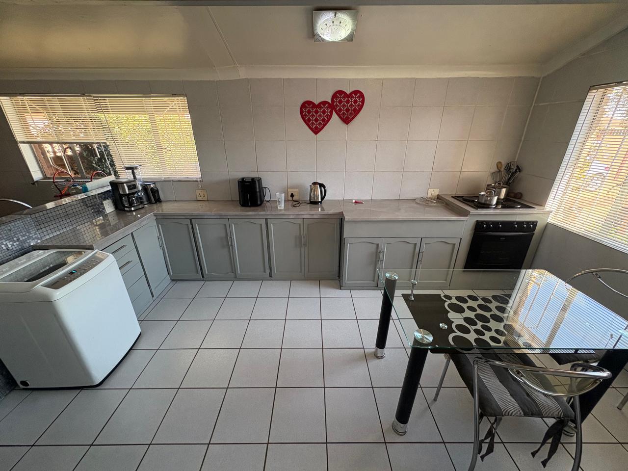 Experience the perfect blend of comfort and entertainment in this stunning main house. The spacious lounge seamlessly connects to an entertainment room equipped with a built-in braai, offering an ideal space for hosting gatherings. A sliding door provides direct access to a sparkling swimming pool, creating a seamless indoor-outdoor flow. The large dining room is conveniently situated next to a charming kitchen, perfect for family meals and entertaining.