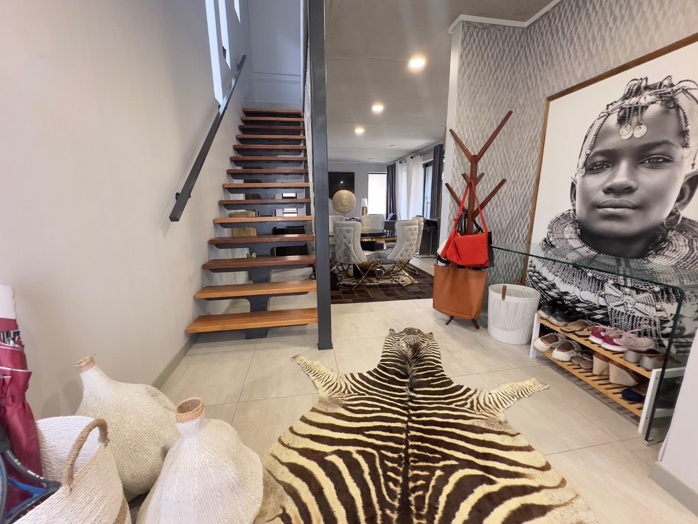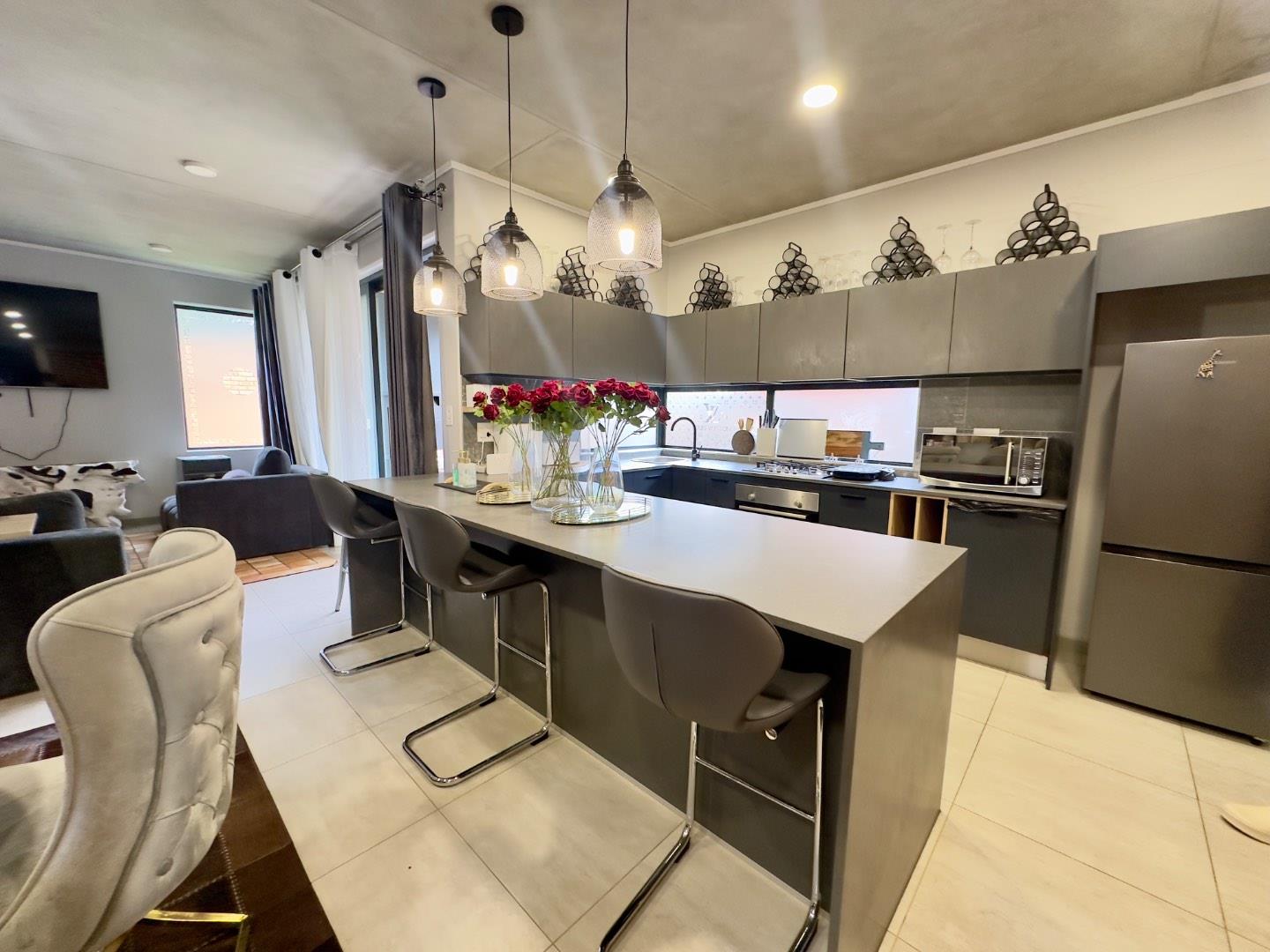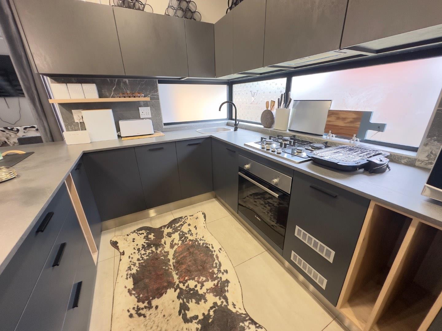 The open-plan dining area seamlessly flows into the large lounge area, creating an inviting space for entertaining or relaxing. Step outside to the covered patio, complete with a built-in braai, perfect for enjoying outdoor meals. The wrap-around yard includes a covered lapa, an added touch by the owner that enhances the outdoor lifestyle.