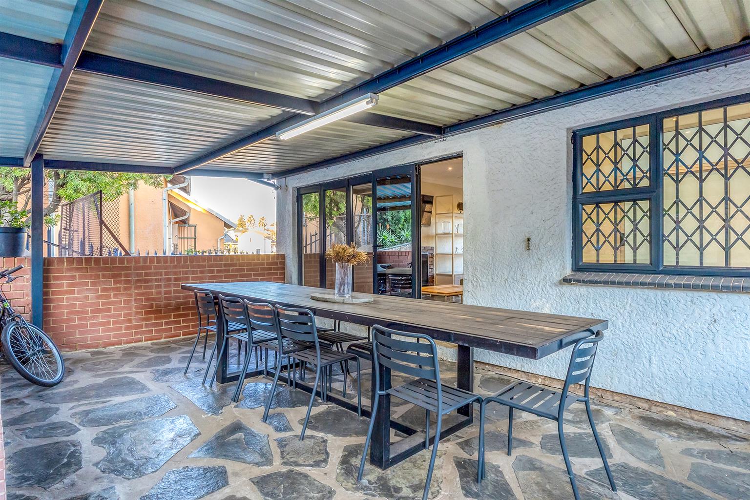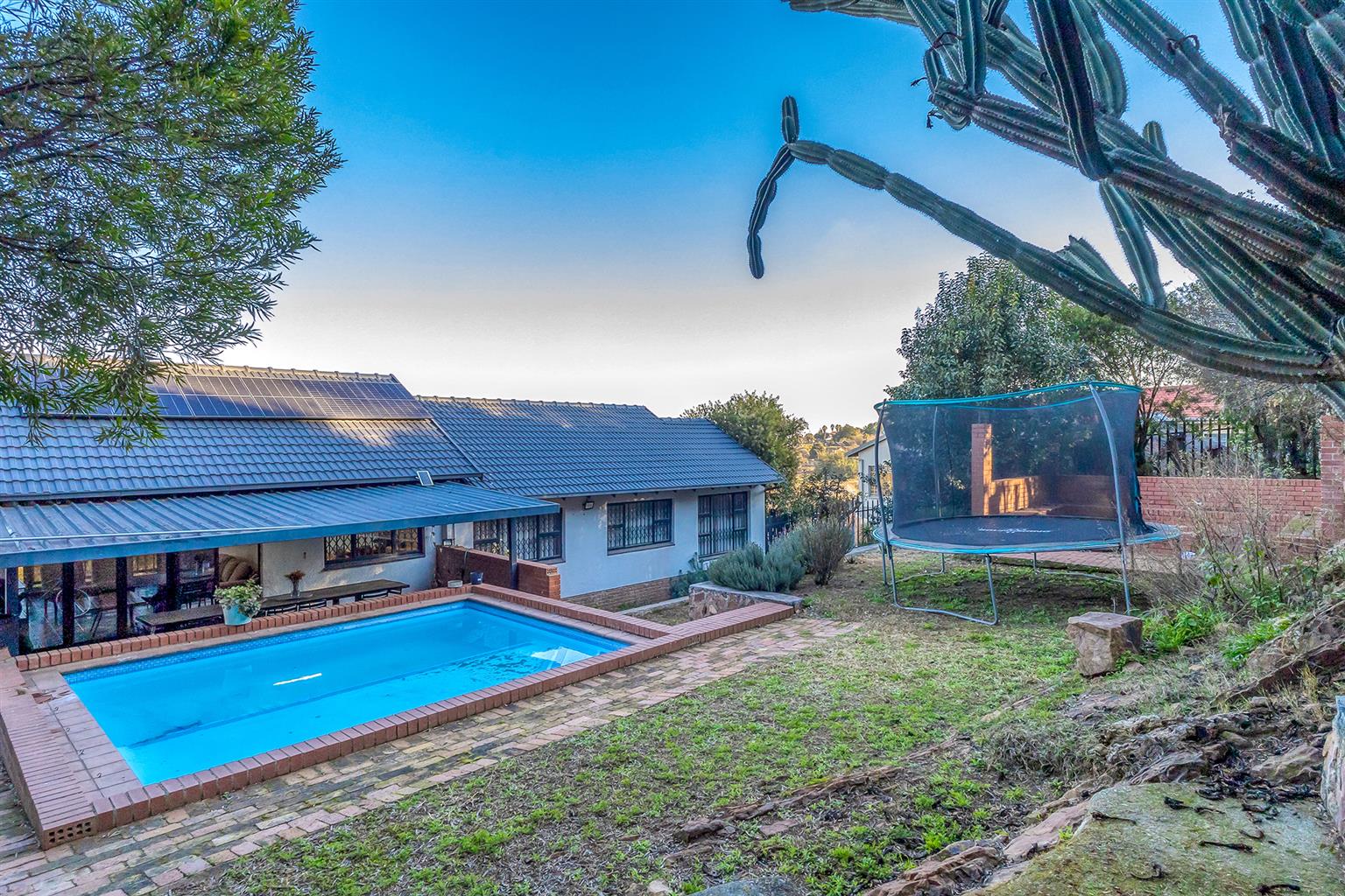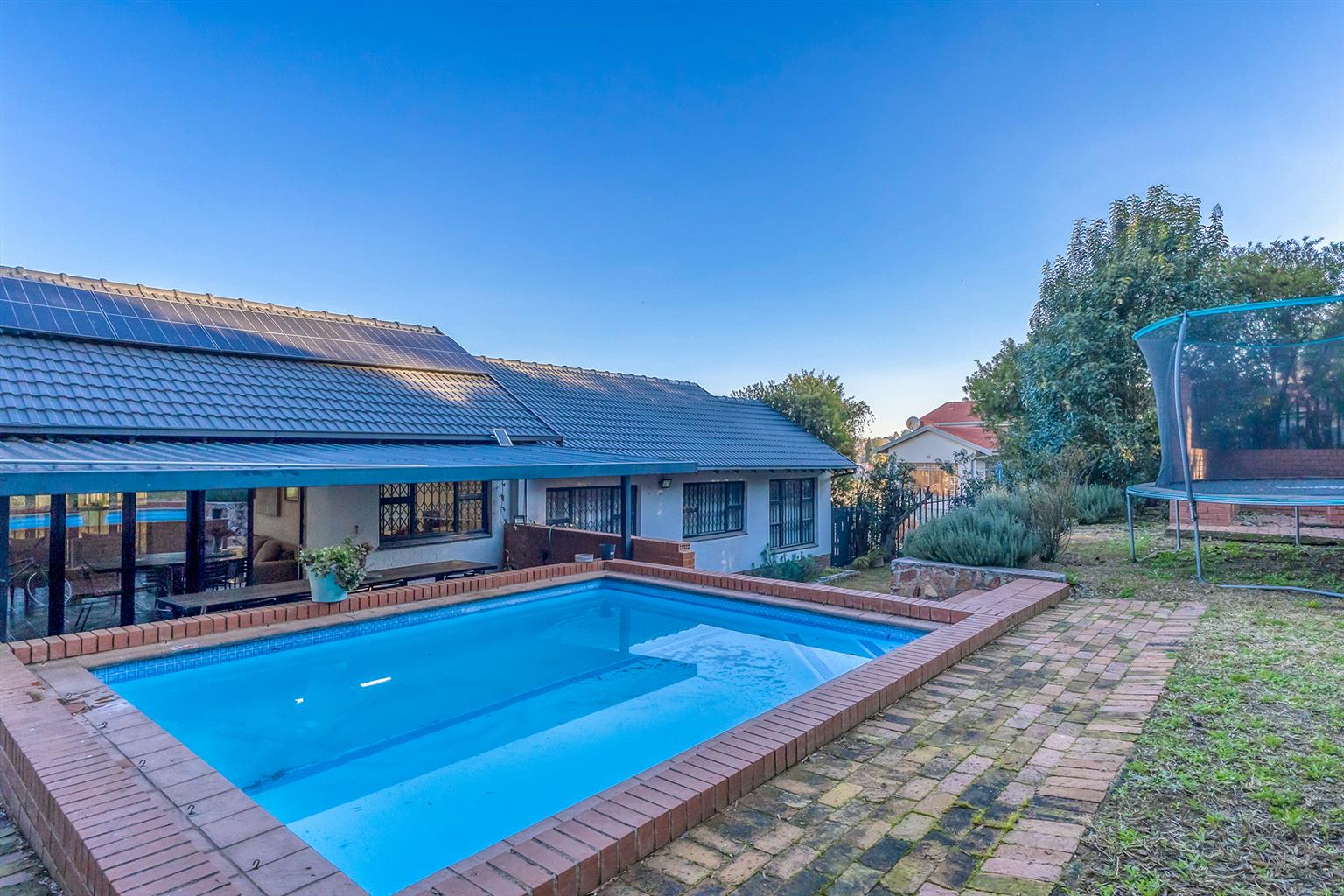 The outdoor space is an entertainer’s paradise, complete with a sparkling swimming pool, a boma for those chilly evenings, and an expansive garden where kids and pets can play freely.