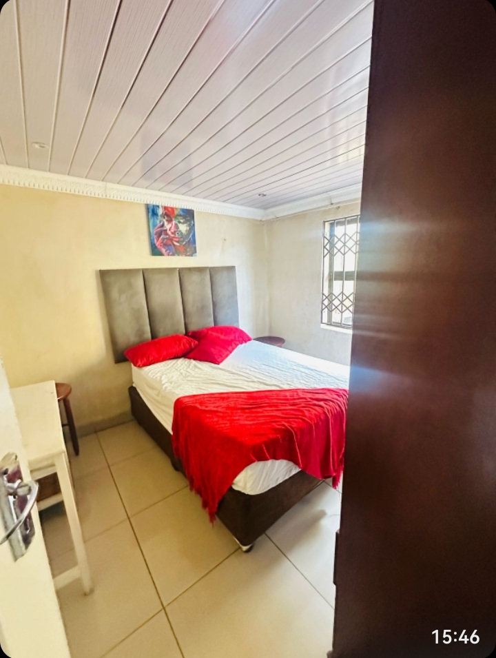 2 bedrooms with built-ins waldrope, ensuite shower toilet, lounge, kitchen with built in cupboards and stove, well secured with burglars wall and gate. NO PARKING. Close to transport schools clinic Dobsonville Shoprite Shopping Mall, Roodepoort and more places to visit.