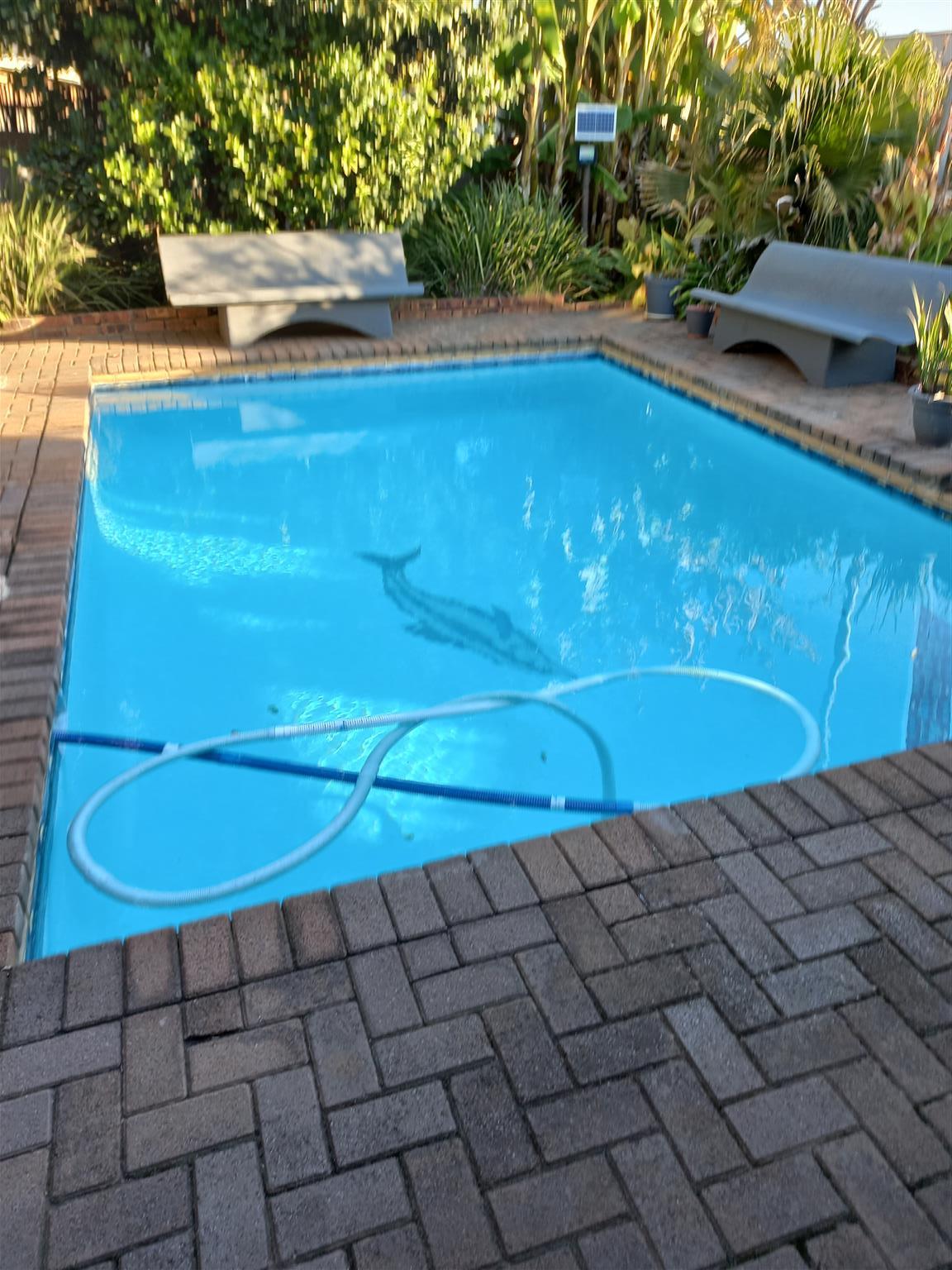 Garden chalets bachelors open plan living area/ kitchen. Seperate bathroom with shower. Use of pool, lapa and braai area. Undercover carport behind locked remote gate. R3100pm plus deposit. Includes water and electricity. Cosy ideal for the single person/ student. Available immediately. Contact Susan cell 0823422943view more to view.
