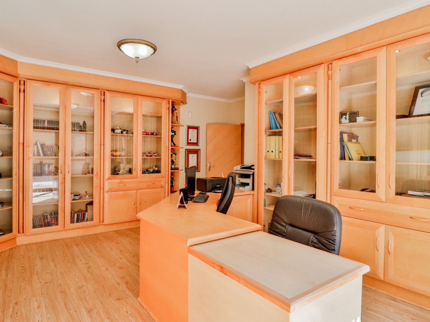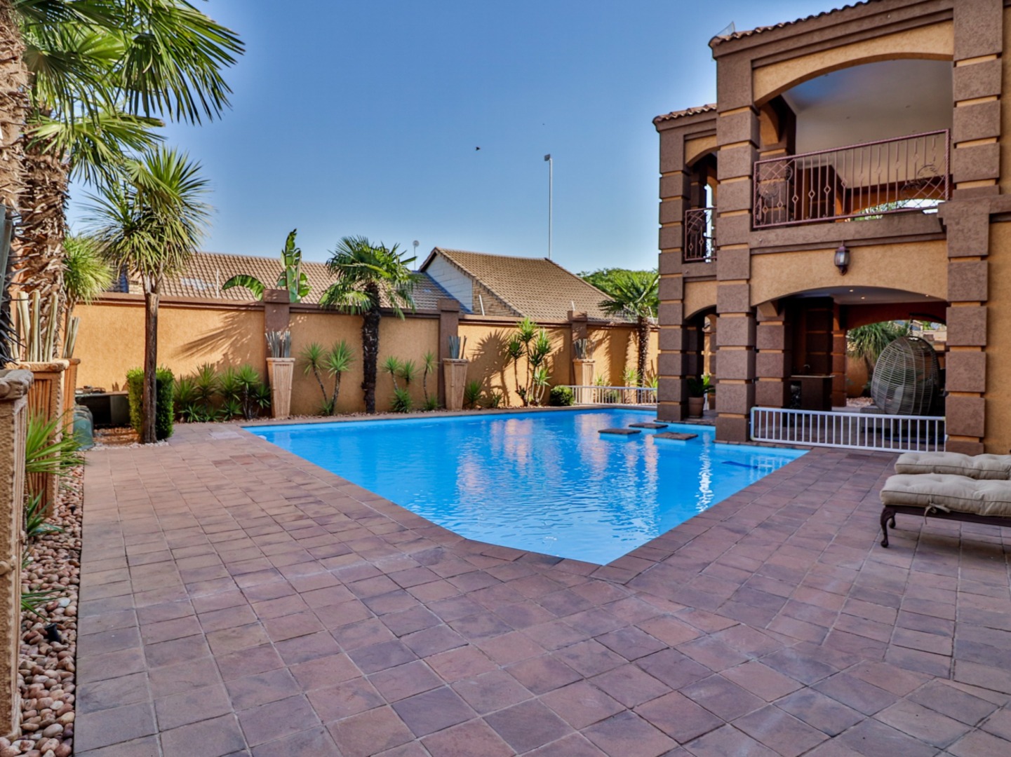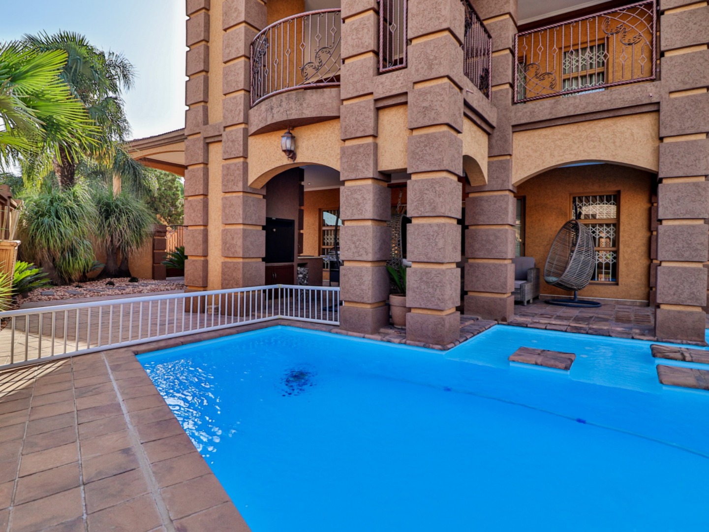 This double story is a sizable 1000m2 under roof, on a 1620m2 stand, fully walled, paved, sparkling swimming pool and manicured garden.