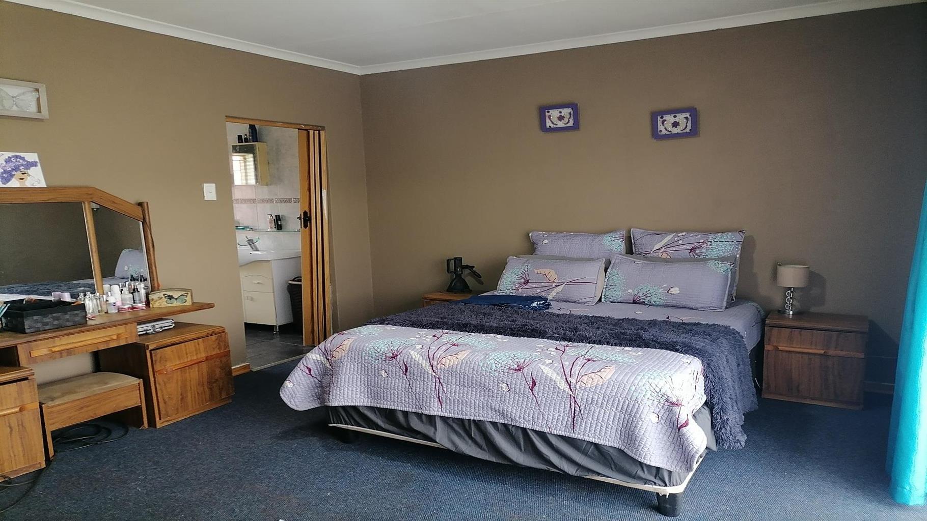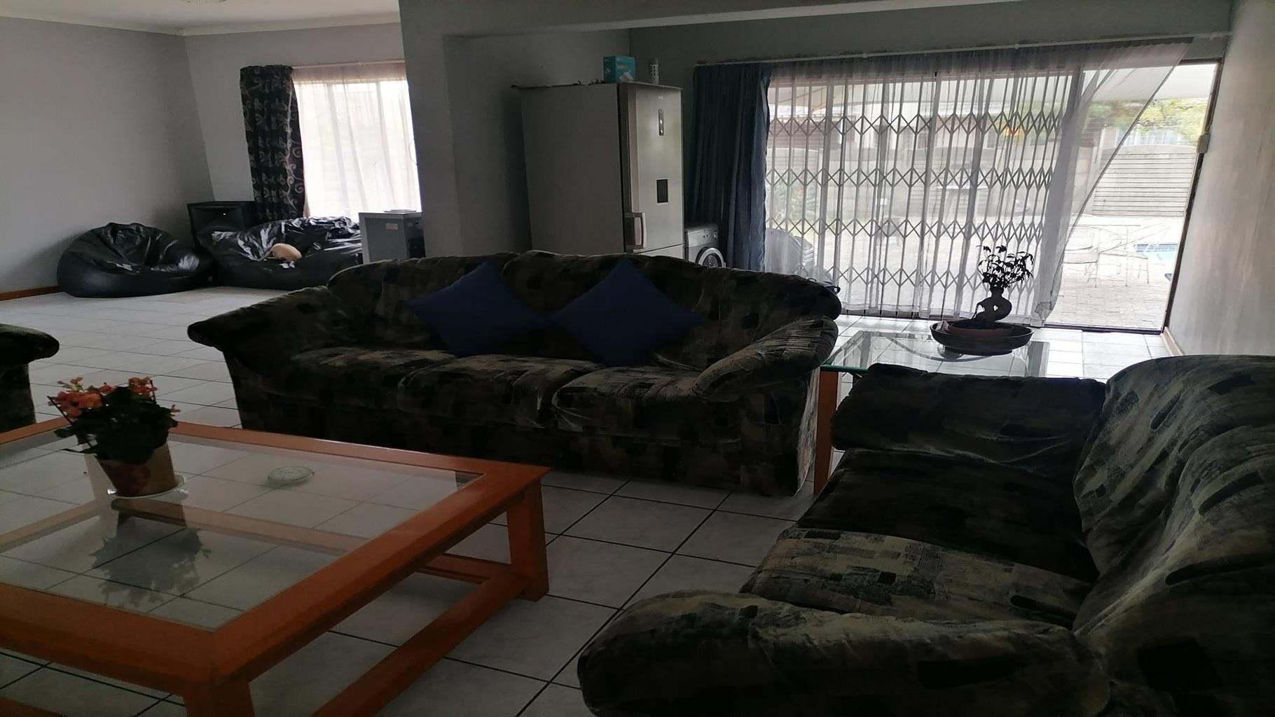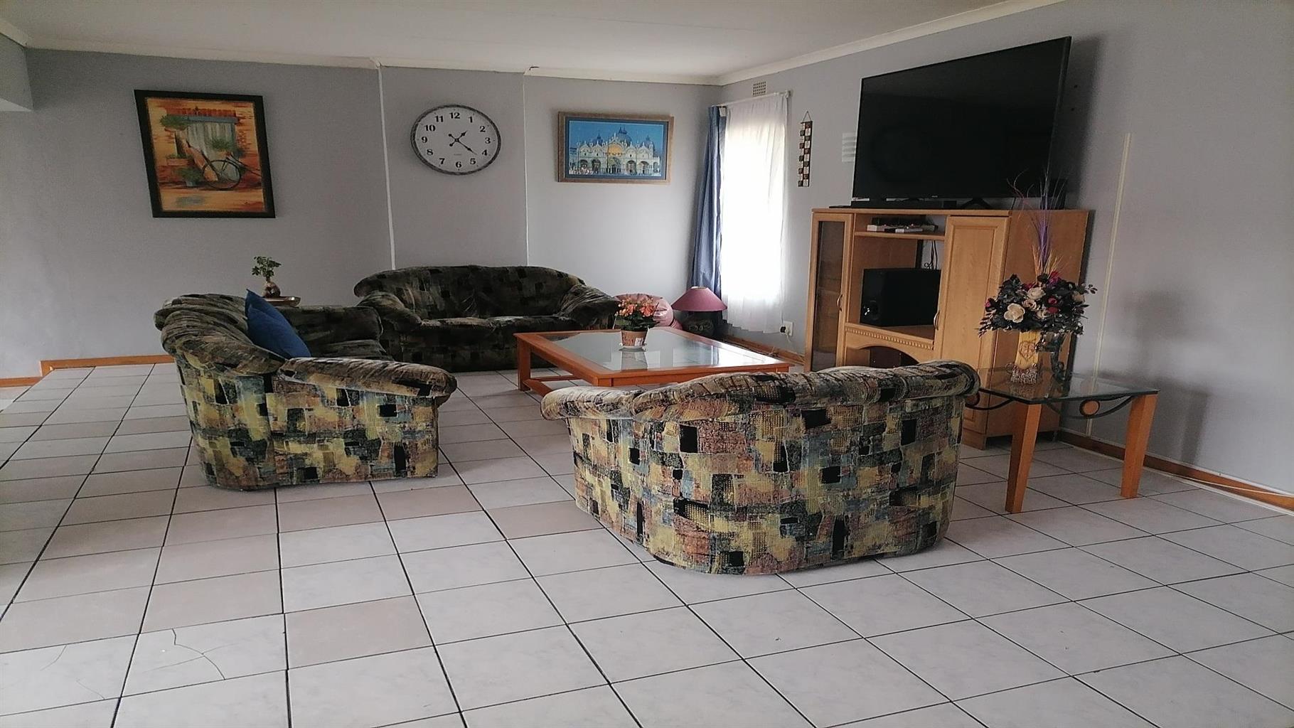 This home welcomes you with a nice spacious open plan lounge/dining room and TV room. A private covered braai area next to the swimming pool to relax for the whole family in the hot summer days. Nice kitchen with build in cupboards and an extra room for overnight guests with a scullery and quest toilet. There is a burglar gate that covers the 3 bedrooms. The main bedroom has an en suite bathroom with a nice big bath, shower, toilet and a build in cupboard for extra storage. Solar geyser and garages for 2 cars. It is close to schools, shopping centers and churches. Electric gate for eTasy life and secure fencing with Vosbeton and electric fencing. The whole house is covered with burglar bars for the safety of the family.